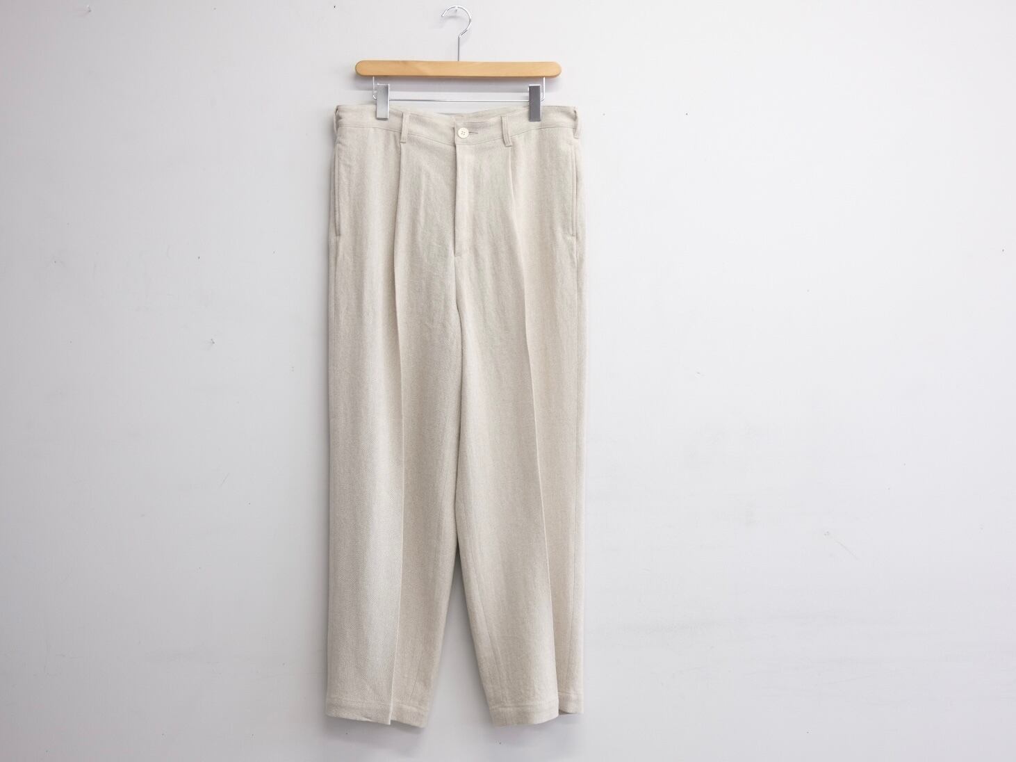 ウエストは敢えて大きく設定し、ベルトで絞って穿くスタイルです。