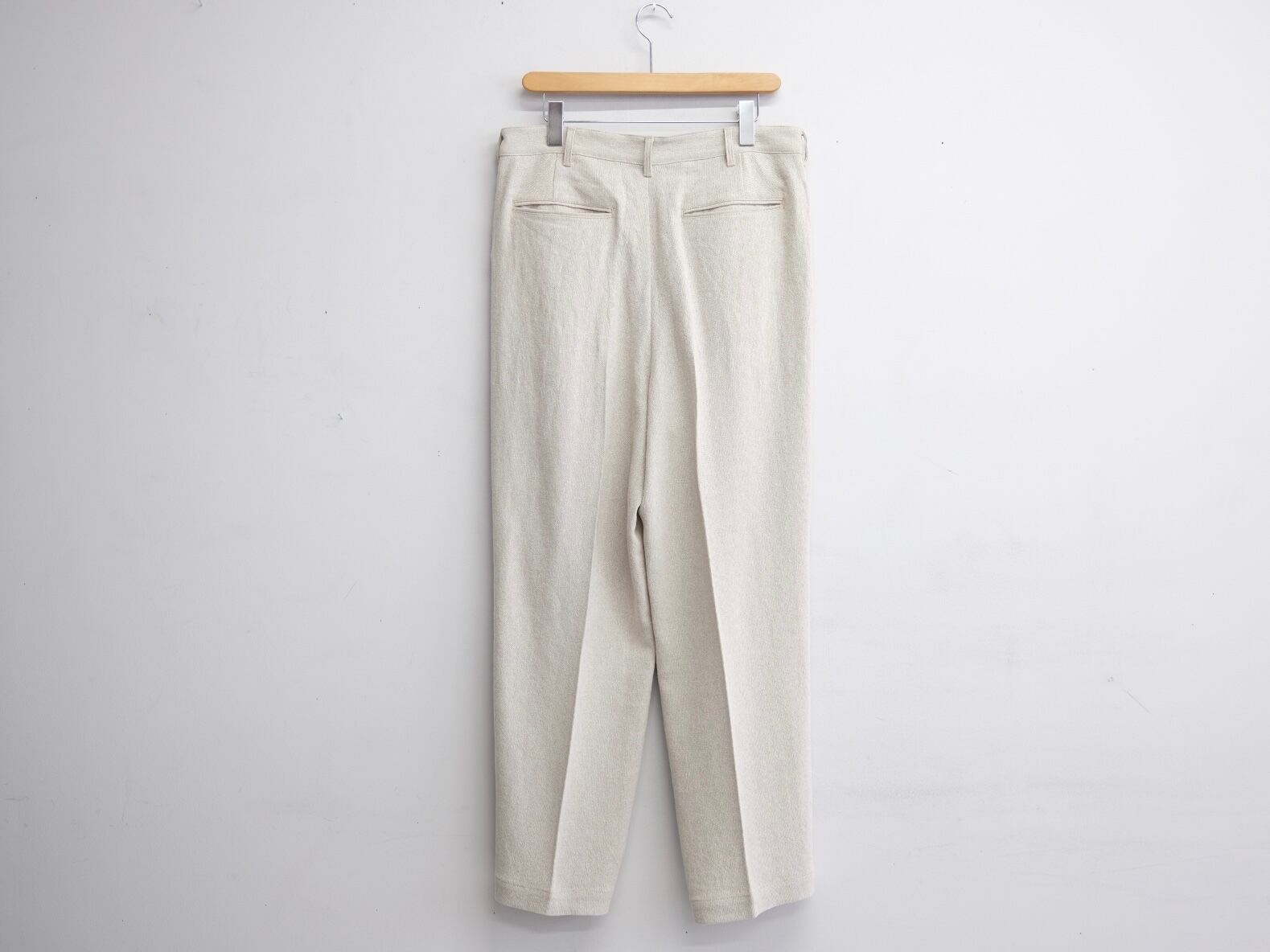 リネンの紡績過程で生まれる落ちわたを糸にし、強撚に仕上げたホップサック生地のシリーズ。表情豊かなリネン素材を再解釈した独特の風合いが魅力で、清涼感としっとりとした肌触りを両立しています。