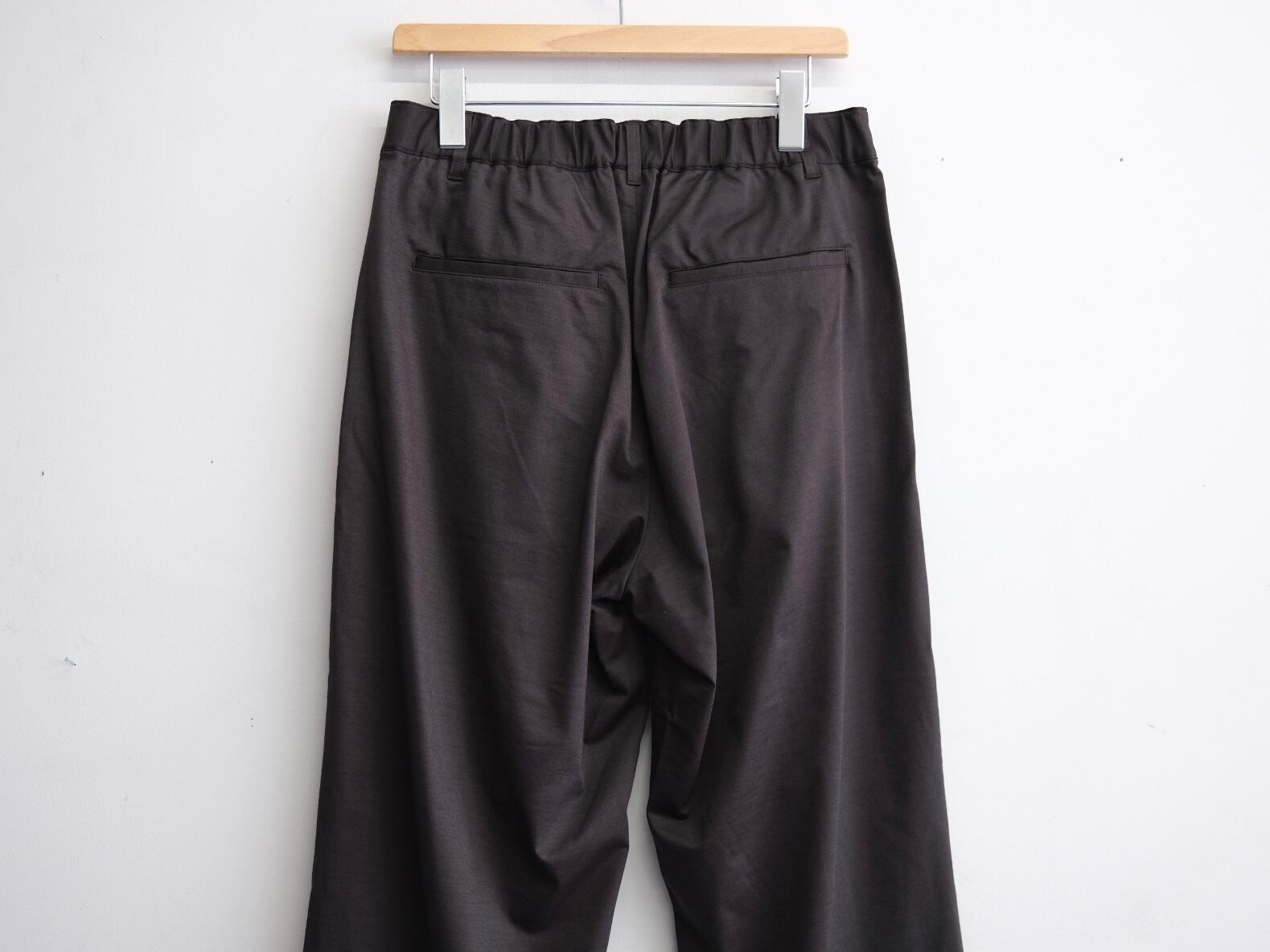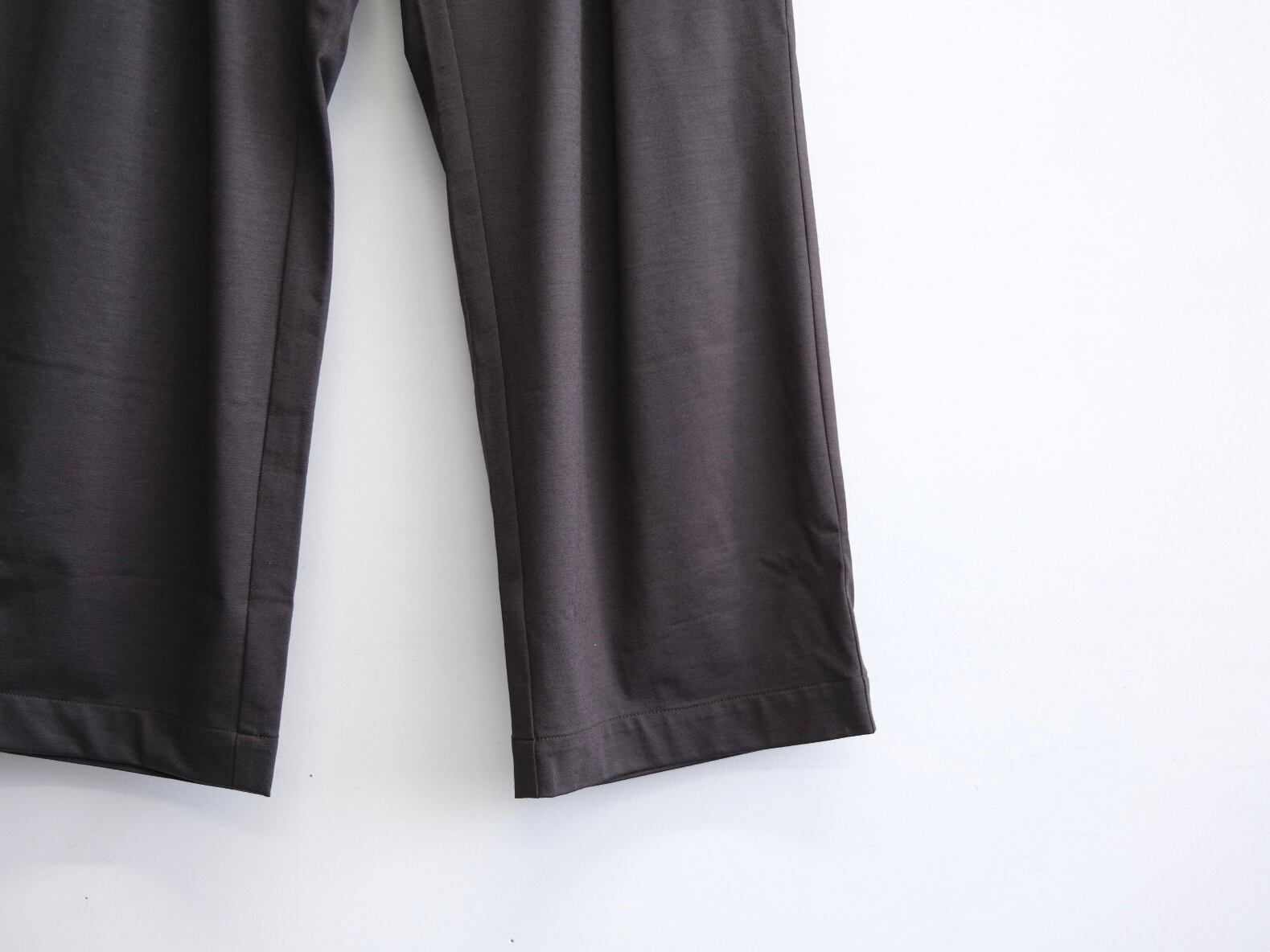 一年中穿けるウール糸を36ゲージ特注丸編み機で高密度にタイプライター組織に編み立てて制作したトラウザーズ。