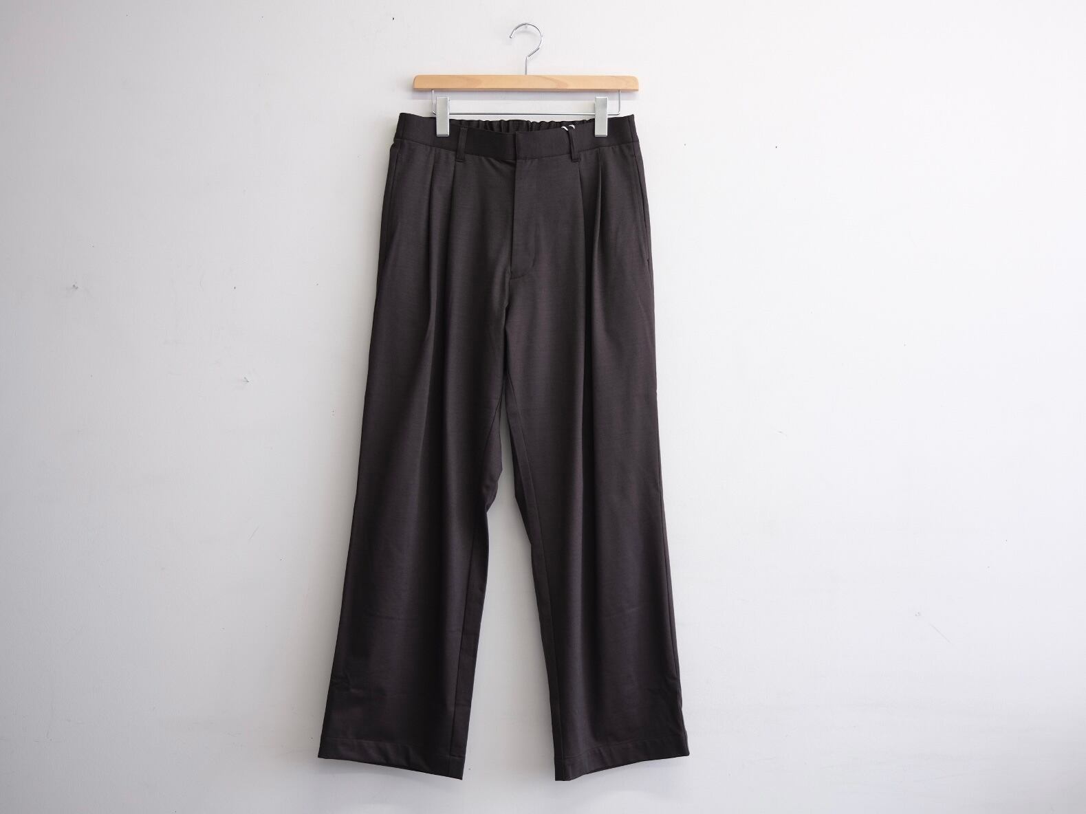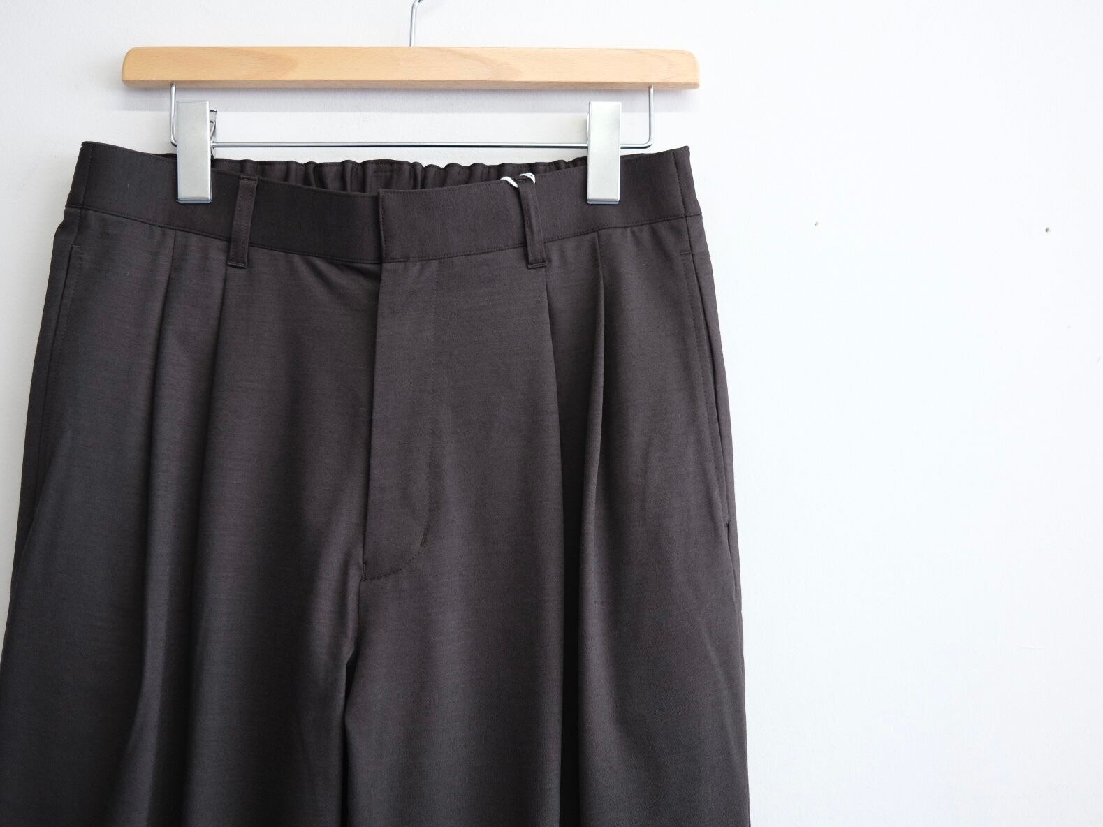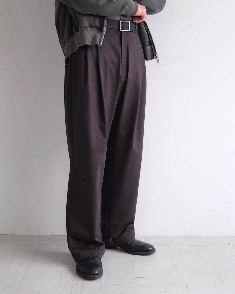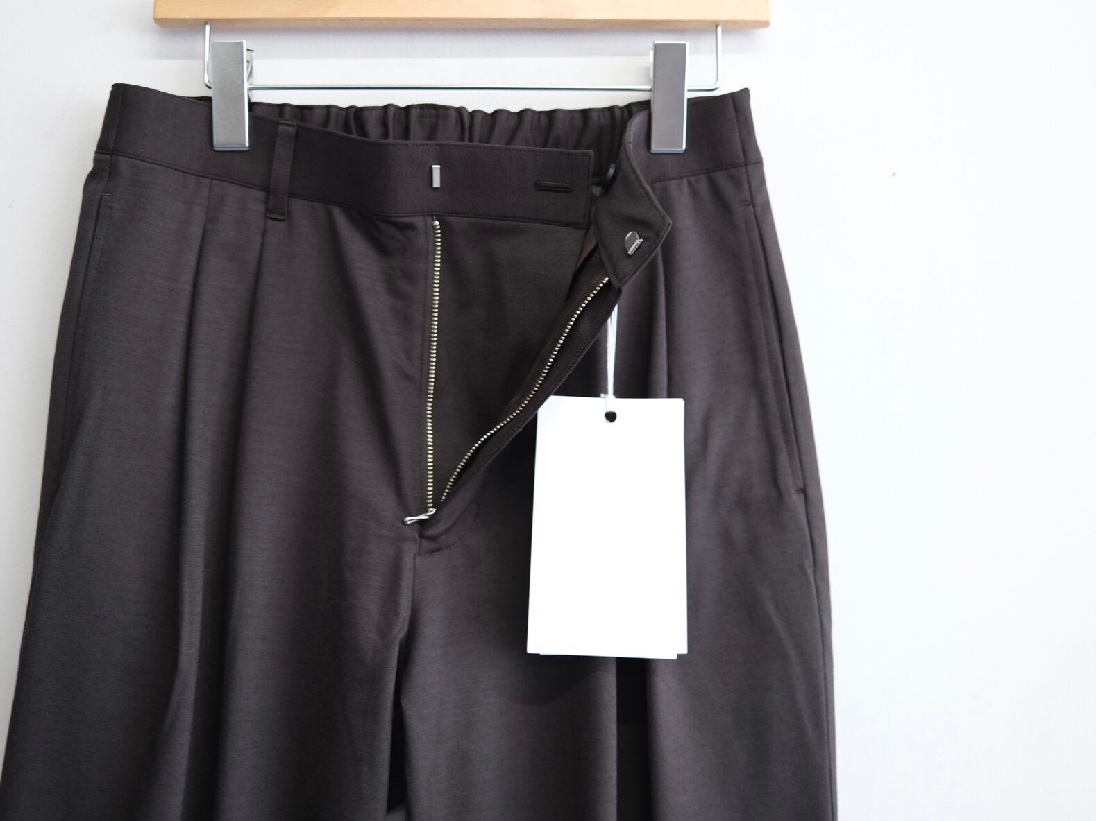 タックが深く入ったスラックス。わたりを程よくとり、軽くテーパードをかけたストレートシルエットが特徴です。