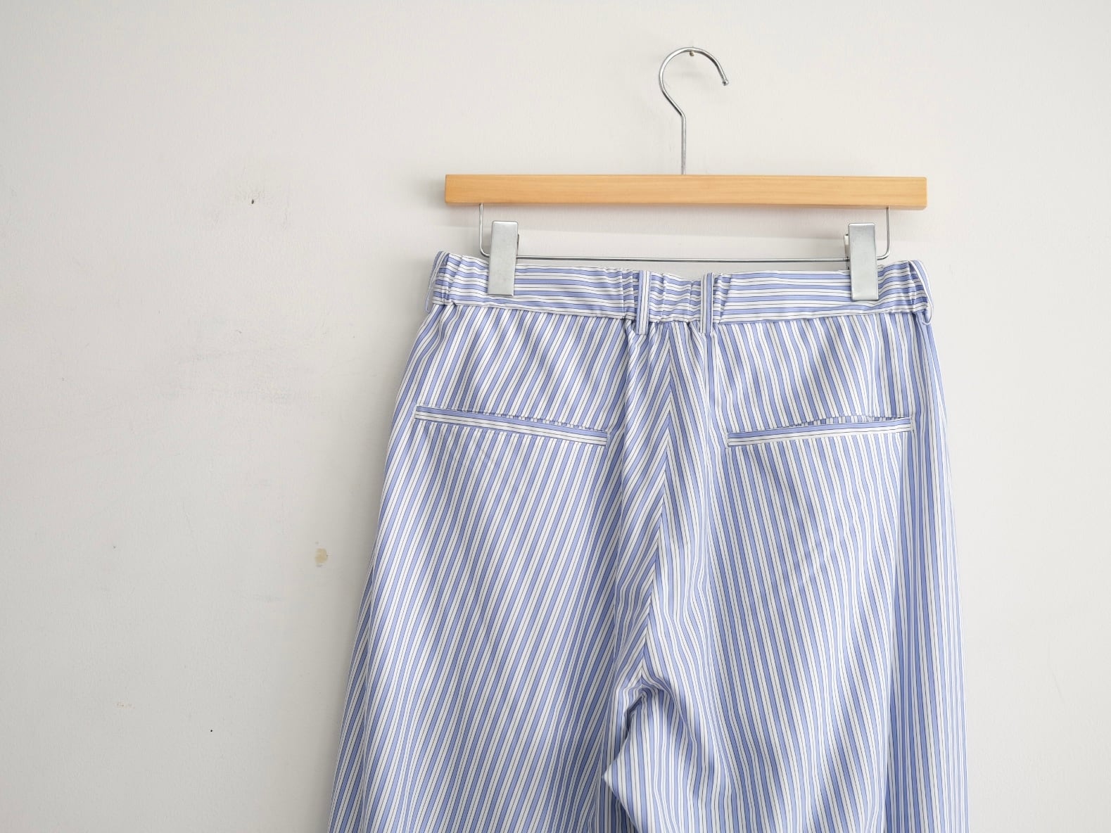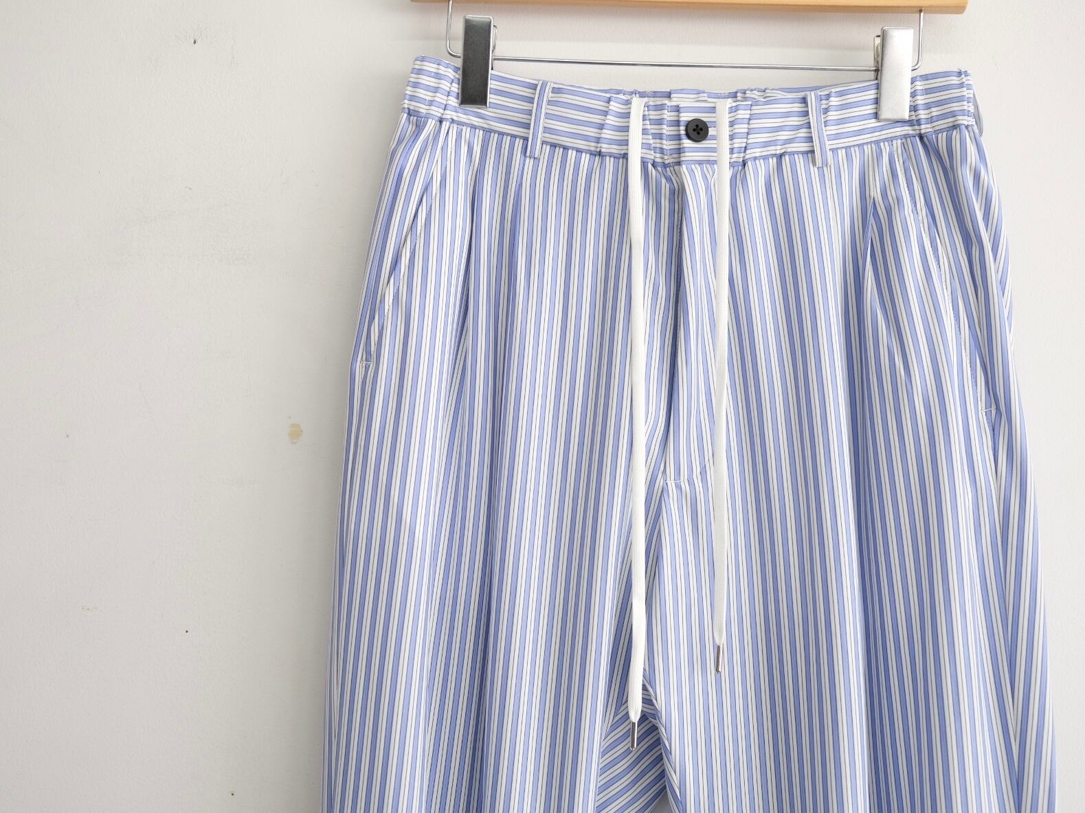 毎シーズン提案しているイージーパンツ。今シーズンは、ツータックの程よい巾をとったストレートシルエット。ウエストは、ゴムで前開きと着脱しやすいディティールです。