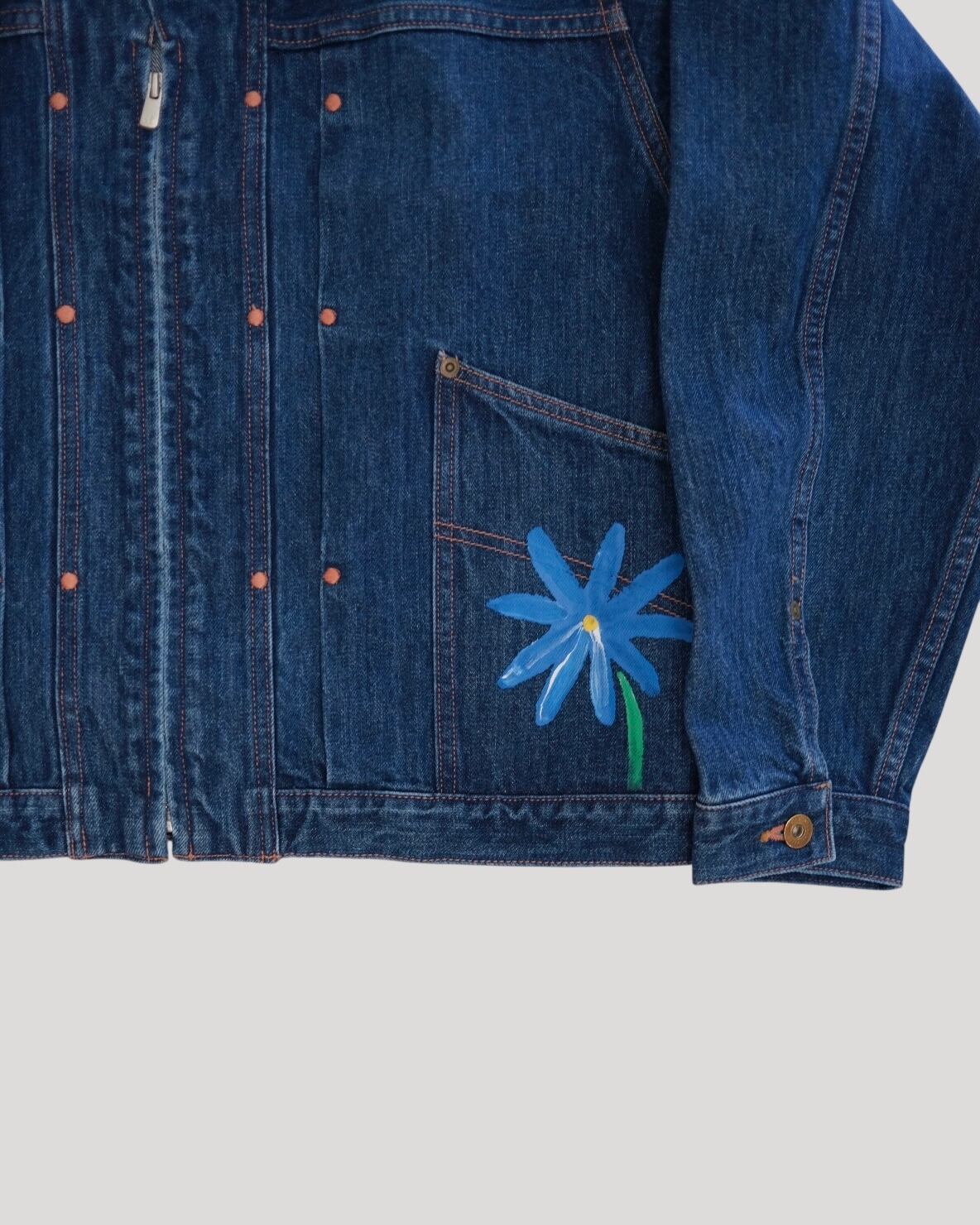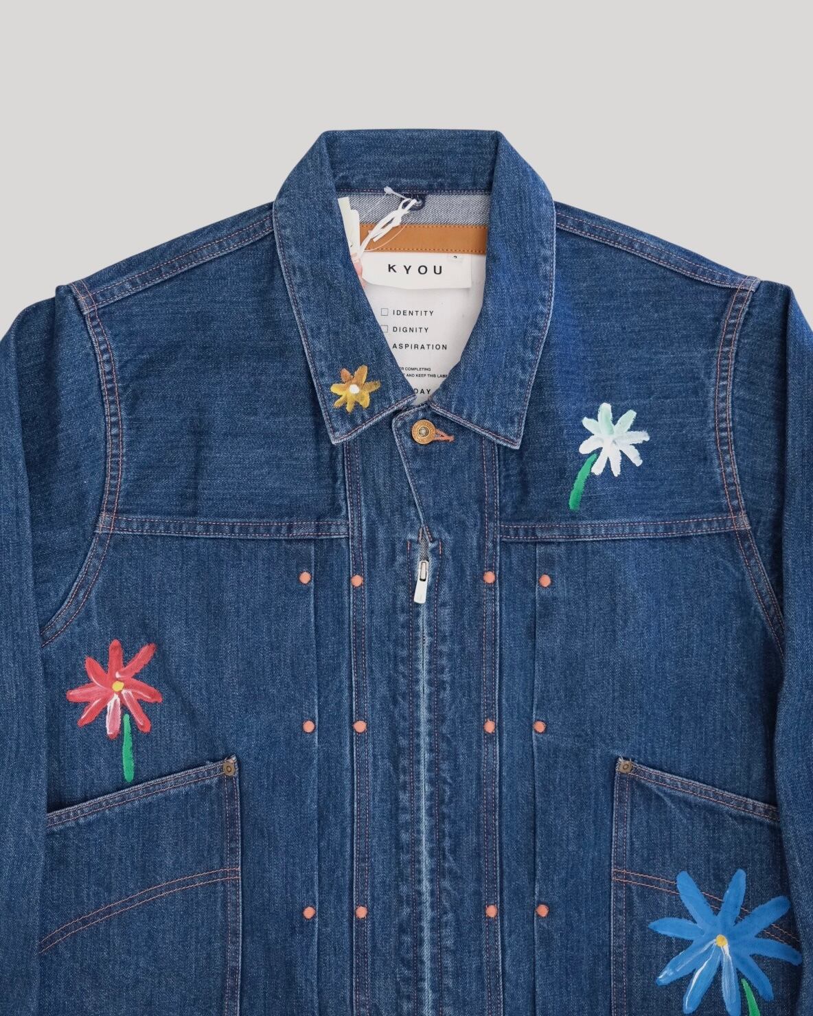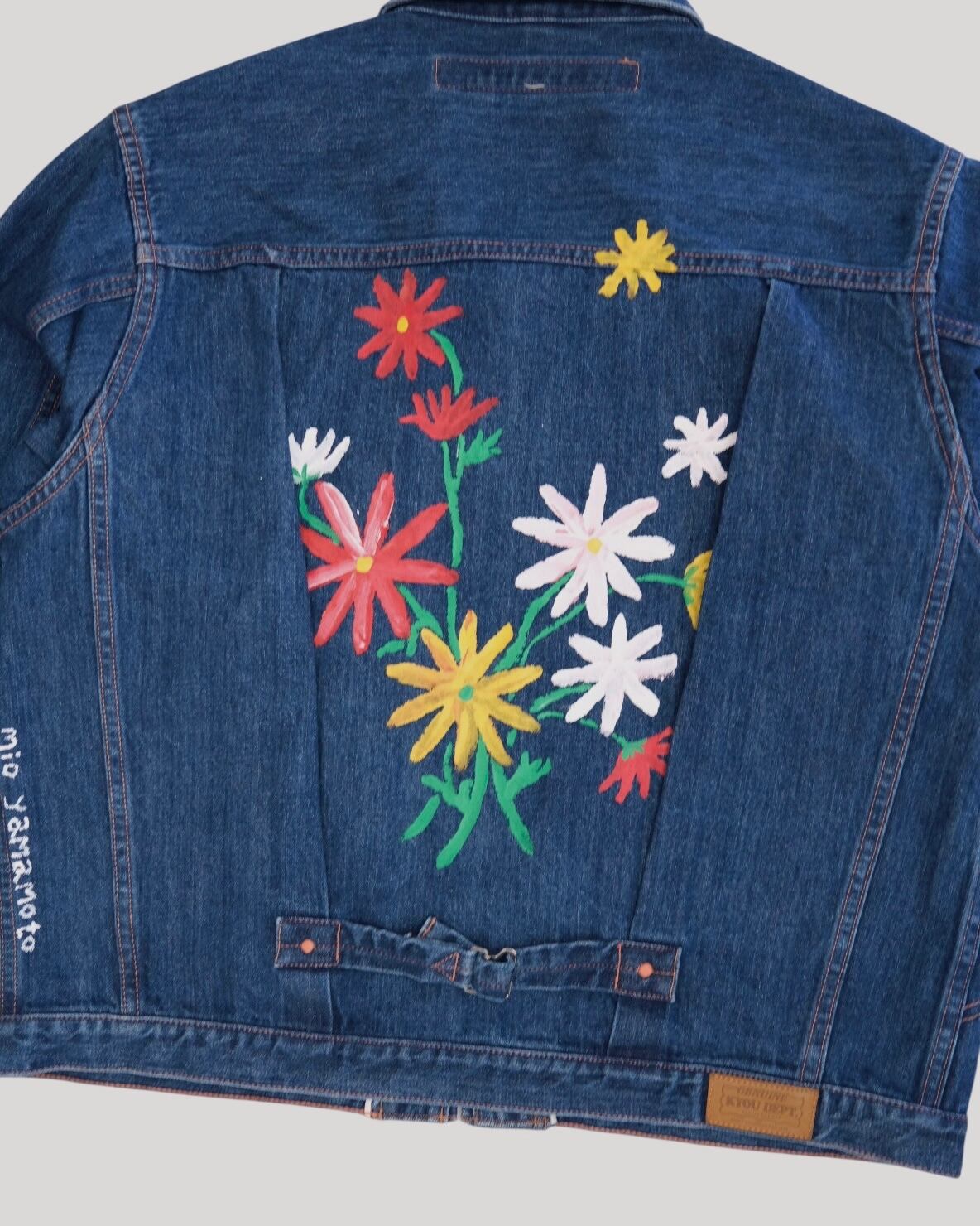 KYOUのシグネチャーモデルのひとつ「ROEBUCK」デニムジャケットをキャンバスに見立て、