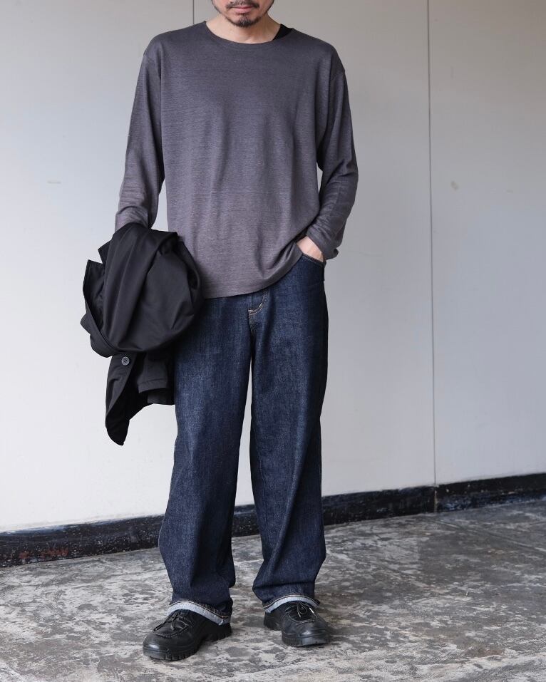 良質なリネンの産地として知られる、フランス北西部ノルマンディー地方のリネンを使用。甘めの天竺組織でシンプルに編み立て、強い洗いをかけることで、しなやかなドレープ感と柔らかな着心地、リネンならではの素材感が感じられる商品となっています。