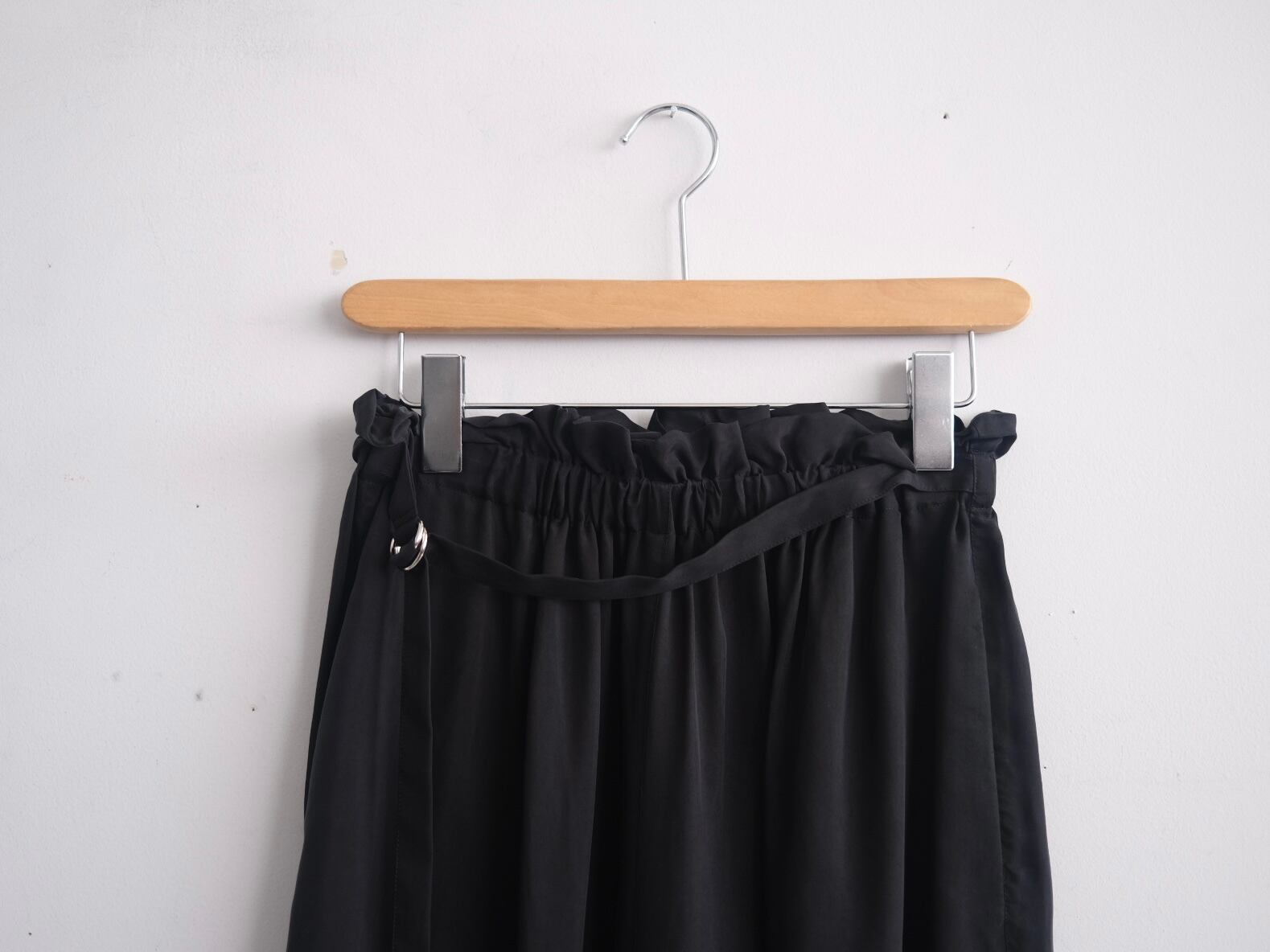 Color Black Size One ウエスト約66cmー90cm股上39股下64cm Quality Cupra 100% Price ¥36000+tax TENNE 定番attachment pants 今シーズンは光沢のあるキュプラでオーダーしました。 丸みのある立体的なフォルムが特徴。 ウエストはイージー仕様です。