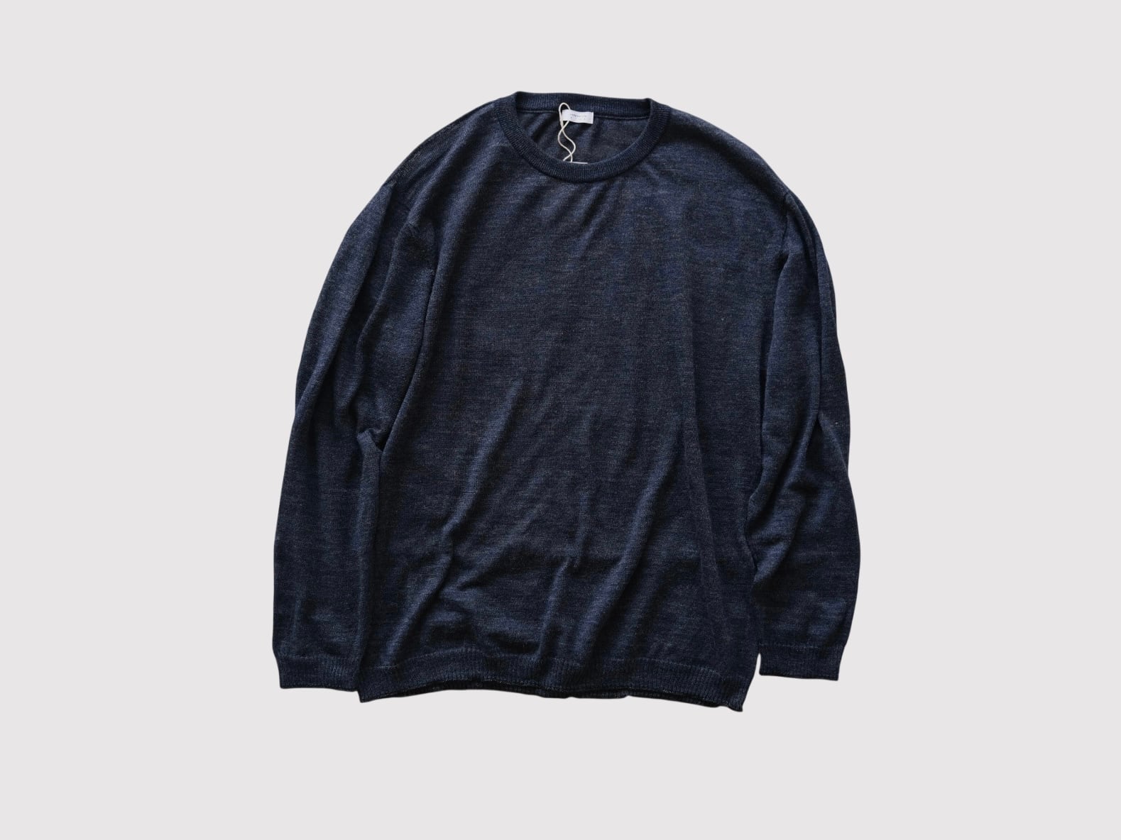 ウールとラミー糸をホールガーメント製法で制作したクルーネックニット。