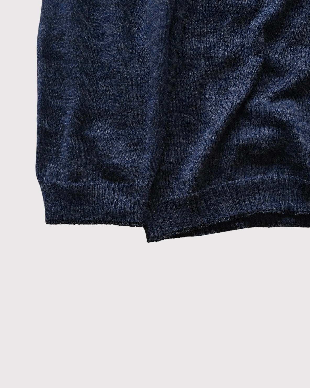 細番手の糸を甘く編み立る事で意図的に透け感を狙ったデザイン。袖口、裾にはさりげなくらラメが入っています。