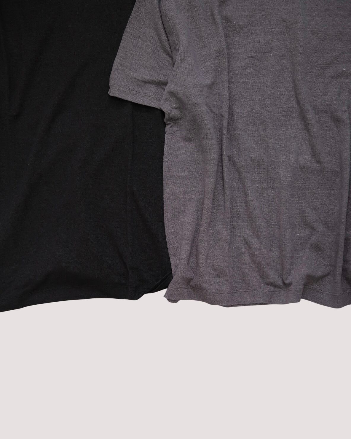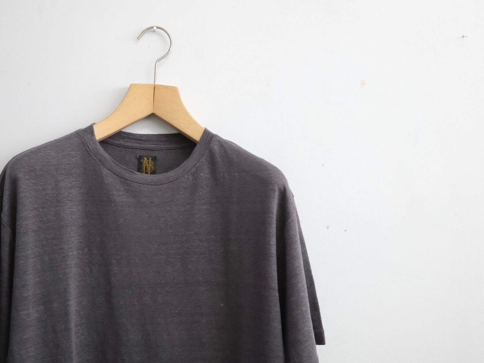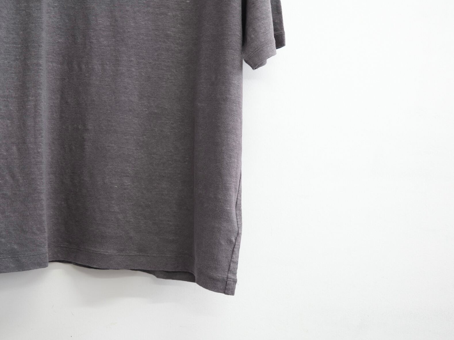 甘めの天竺組織でシンプルに編み立て、強い洗いをかけることで、しなやかなドレープ感と柔らかな着心地、リネンならではの素材感が感じられます。