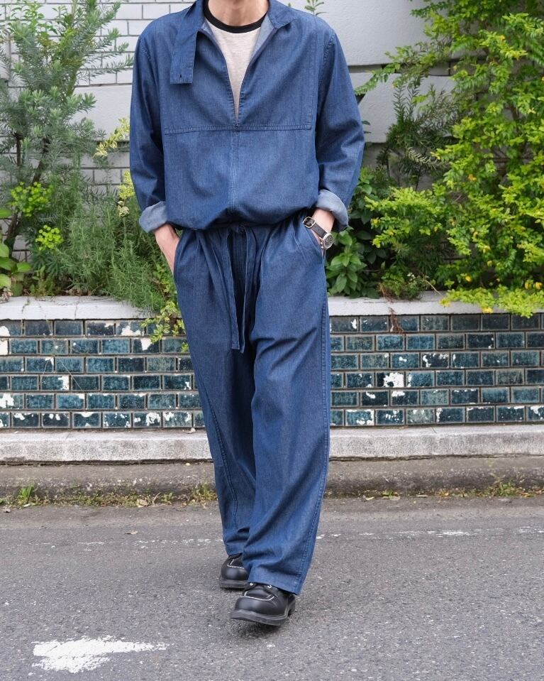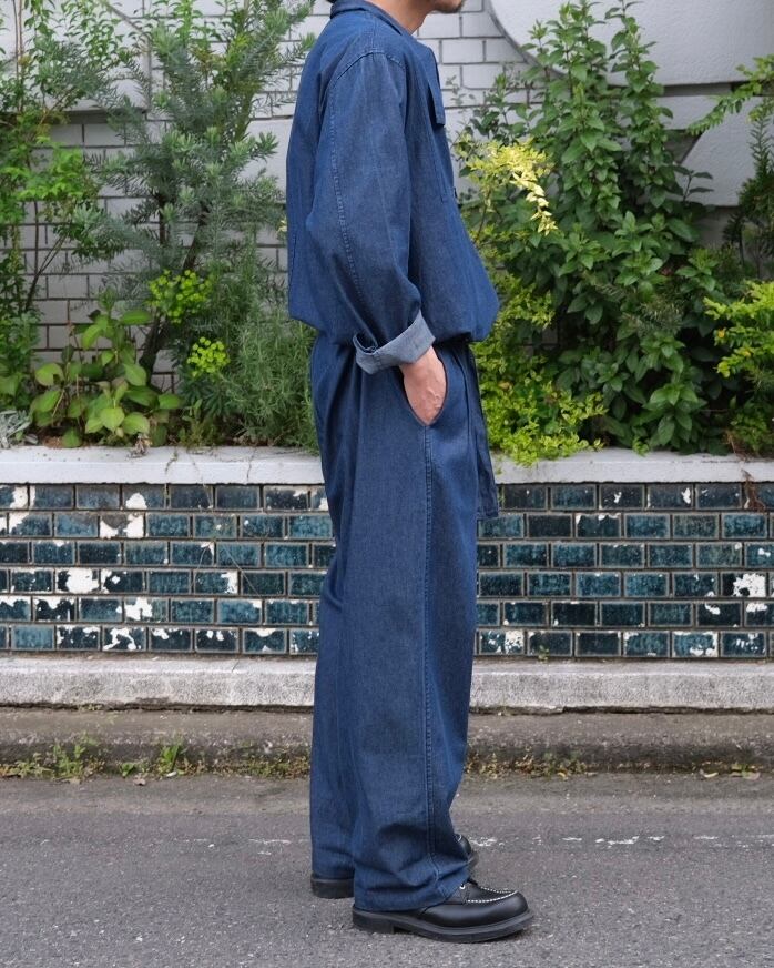 SEEALL定番のインド生産ラインよりライトオンスのデニムを使用したオールインワン。