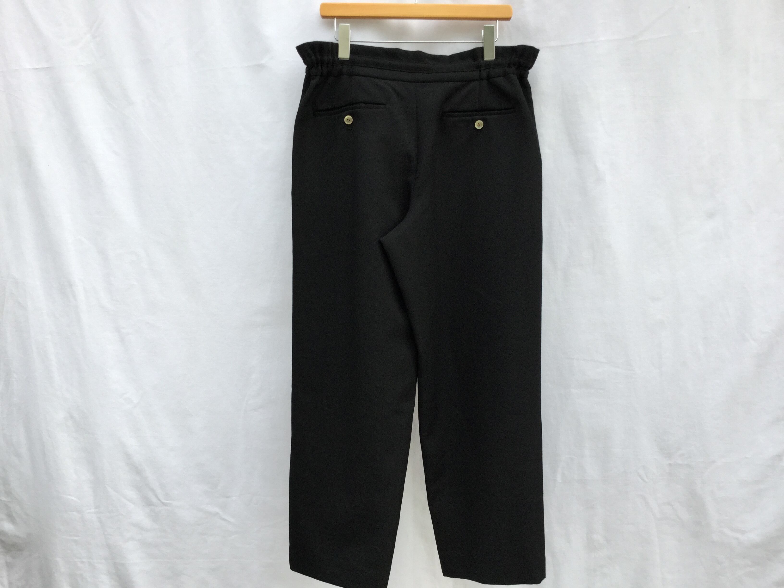 DIGAWEL 定番のSIDE GATHER TROUSERです。丈をやや短めに設定したストンとしたセミワイドシルエット。ウエストのサイドにはゴムが入りドローコードで絞れるのでリラックスして穿いて頂けます、