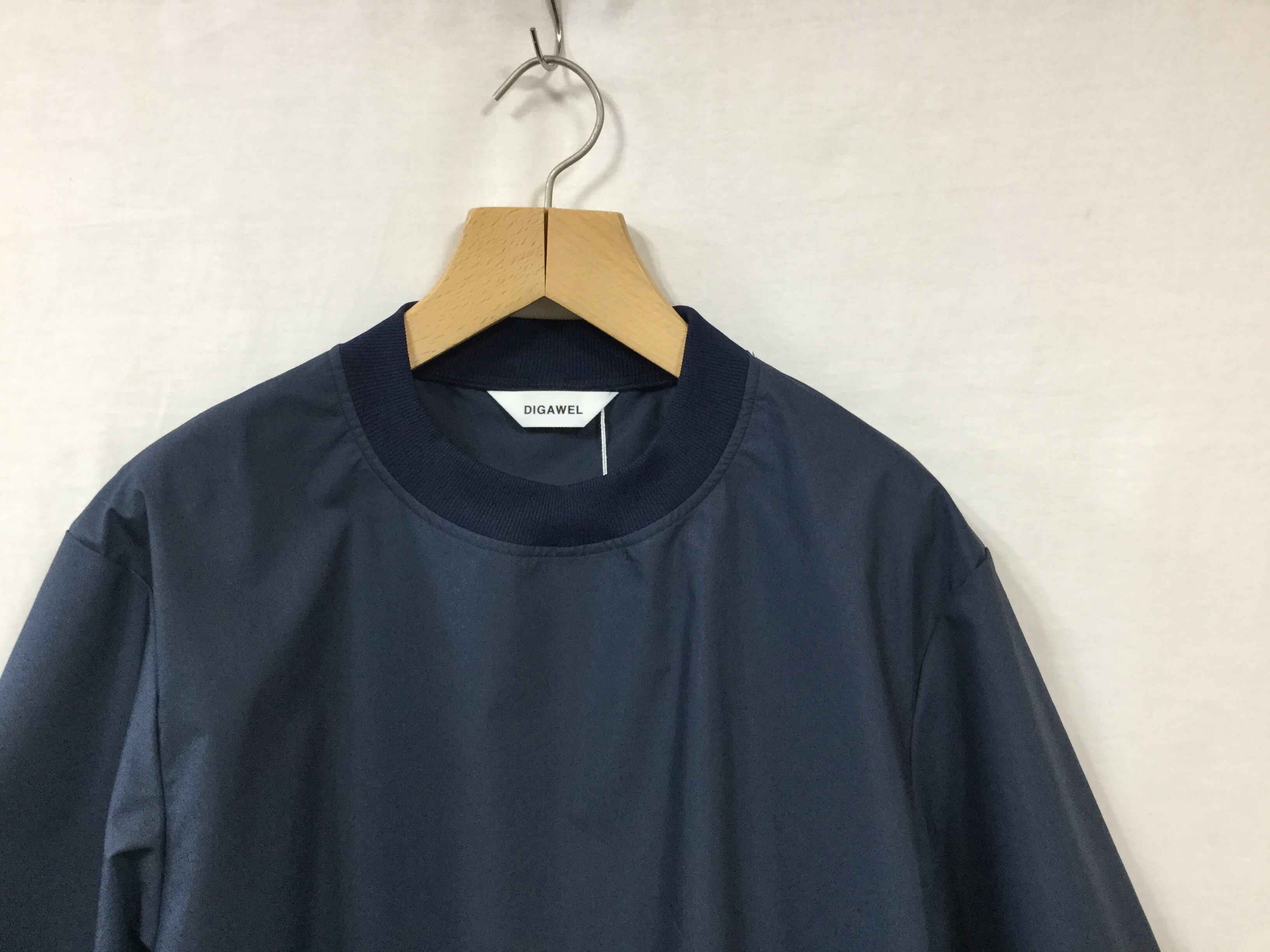コットンポリ素材のクリーネックプルオーバーシャツ。ゆったりしたシルエットで5部袖程の袖丈です。