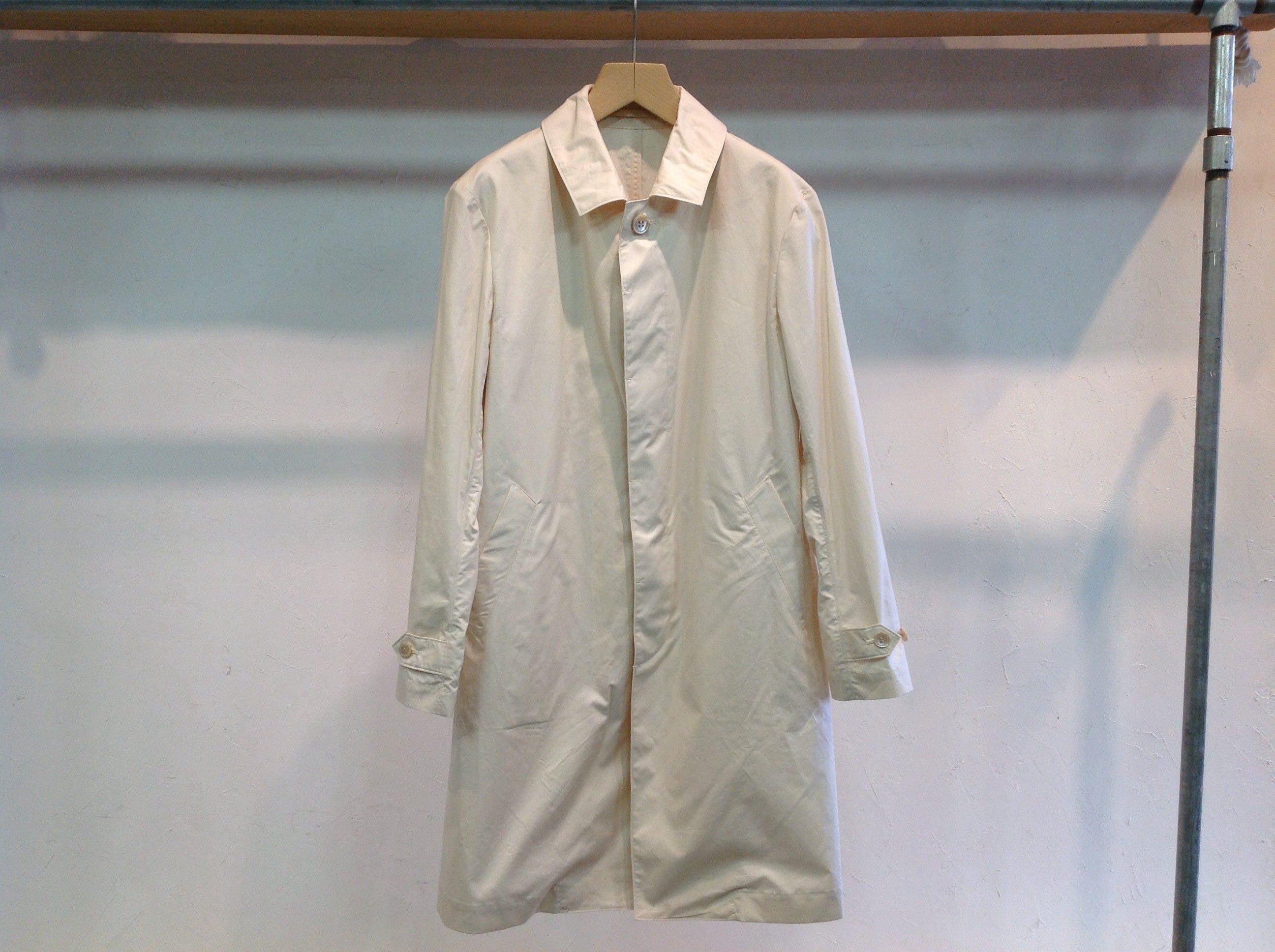 裏無しの一重仕立てでインナーを変えながら3シーズン着用できるコートです。