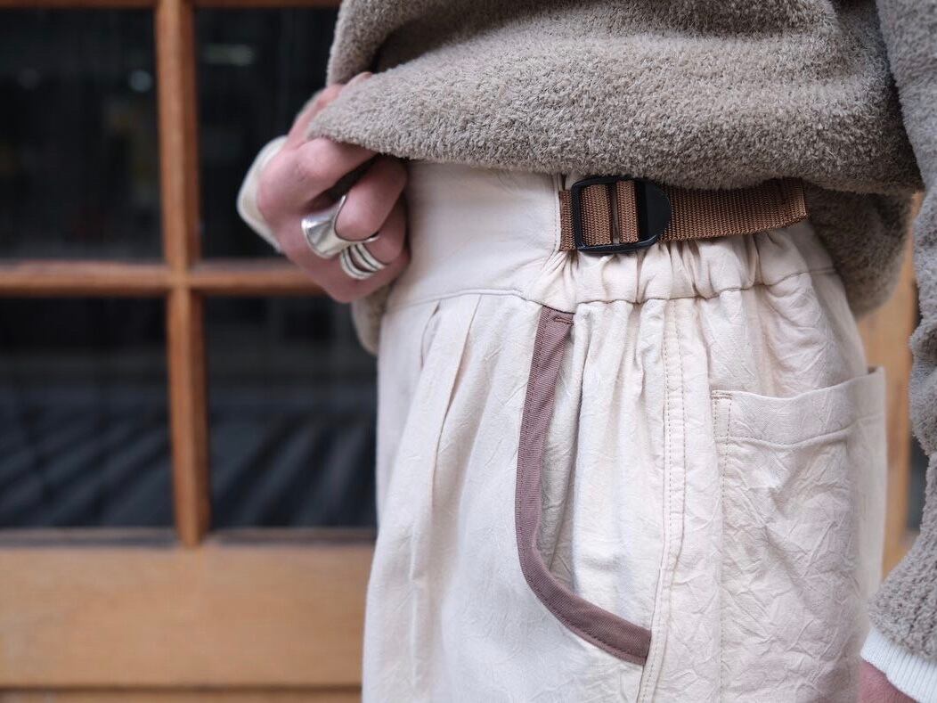 ボリュームのあるワイドシルエットはウエスト、裾を絞れ立体感のあるシルエットをつくれます。