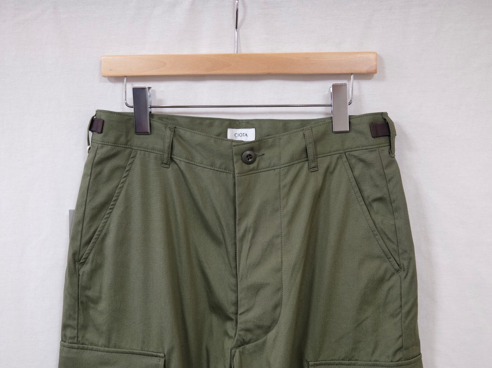 そのスビンコットンのバックサテン生地で制作したU.S.ARMYジャングルファティーグパンツパンツをモチーフにした一本。
