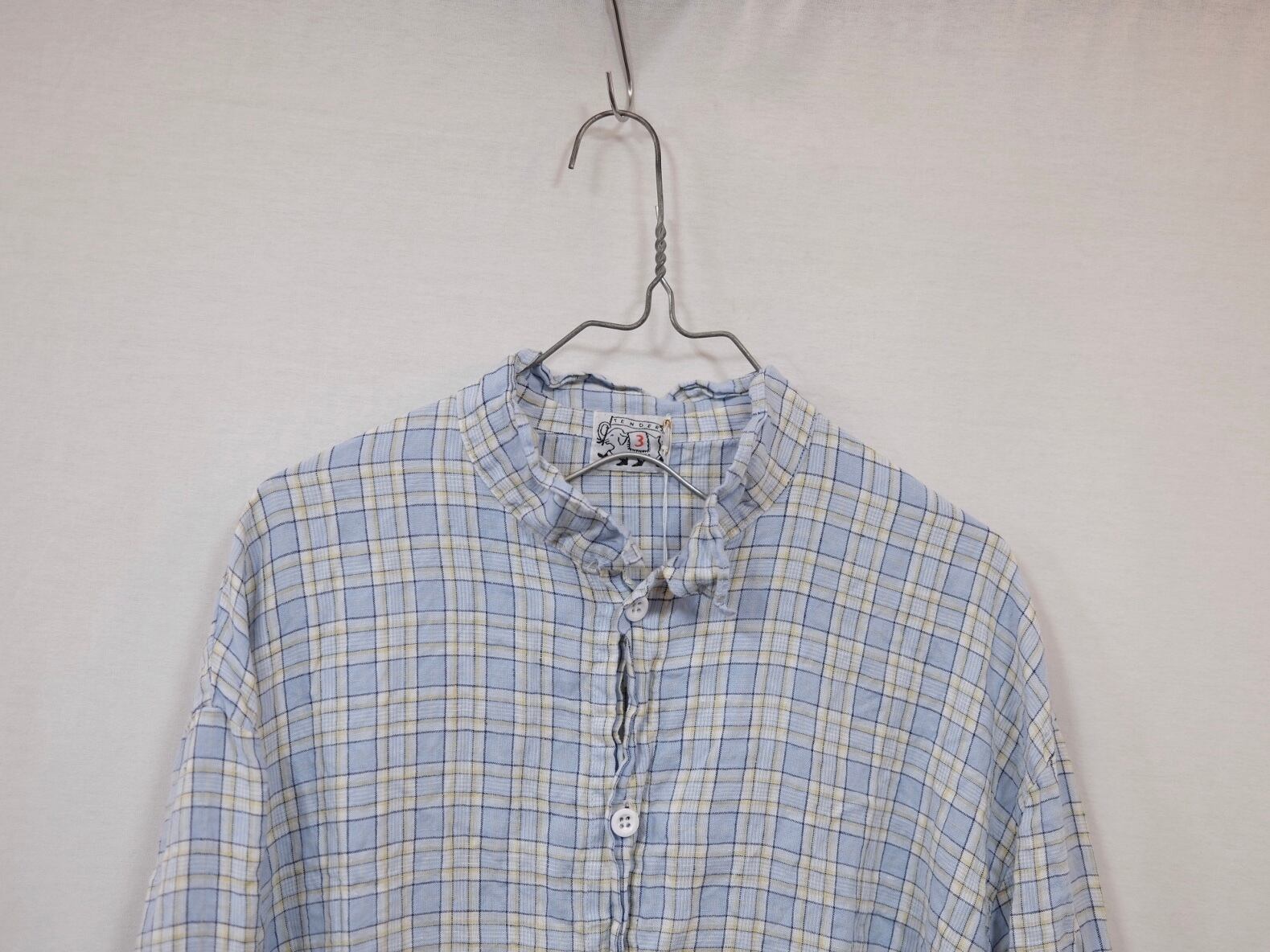 北アイルランドで織られたデットストックのリネンチェック生地を使用したテイルシャツ。