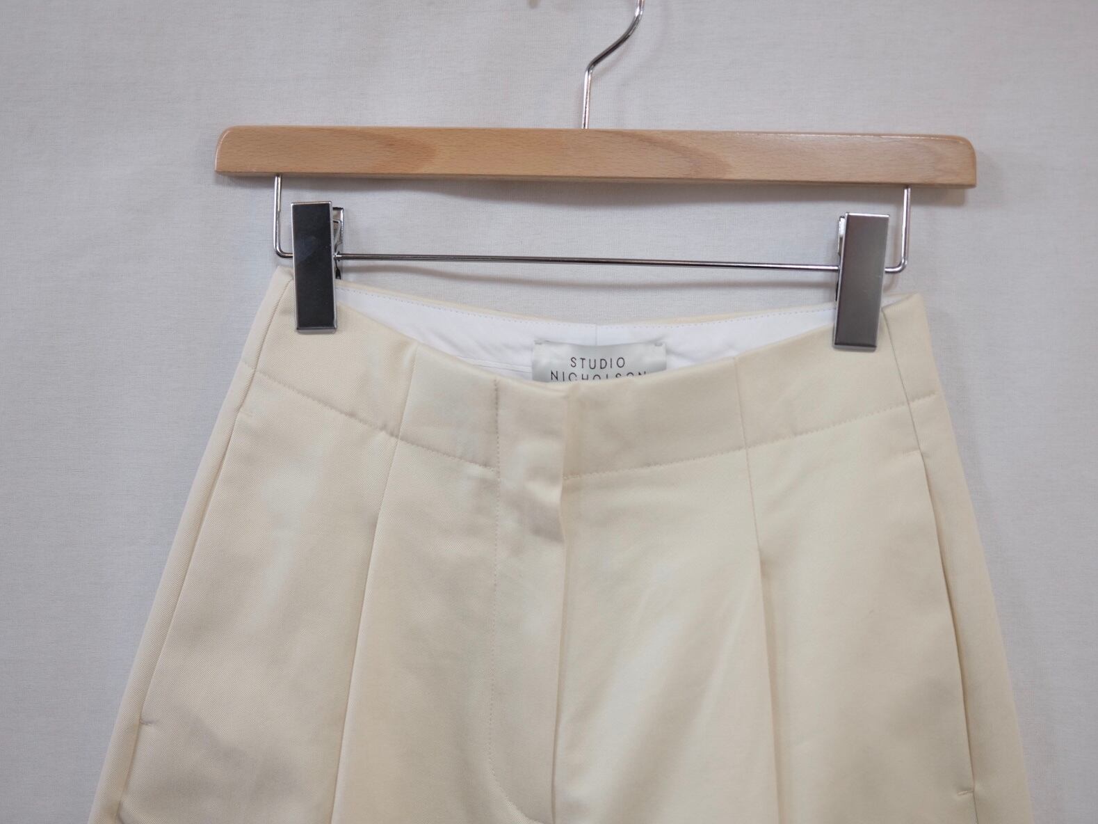 ニコルソン定番のDEEP PLEATS PANTS。立体的でボリュームのあるニコルソンならではのシルエット。バランスのとり易いアンクル丈もポイントです。