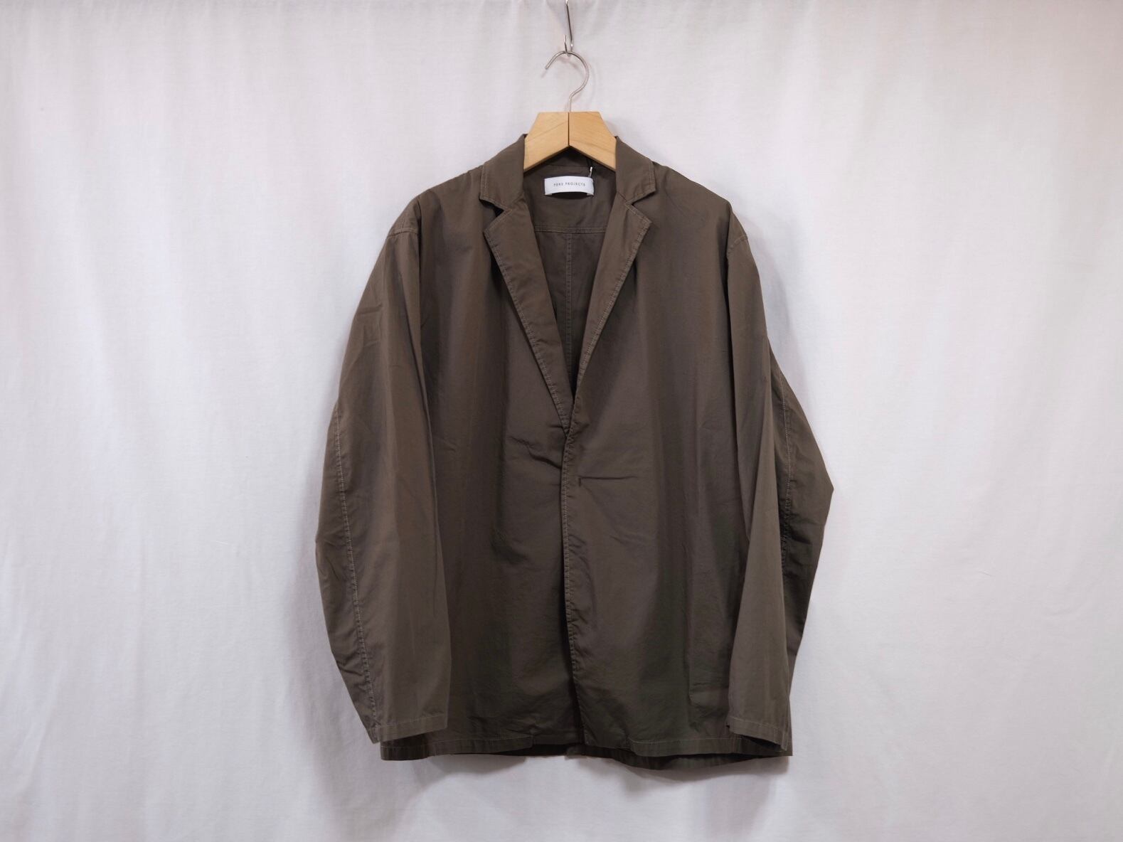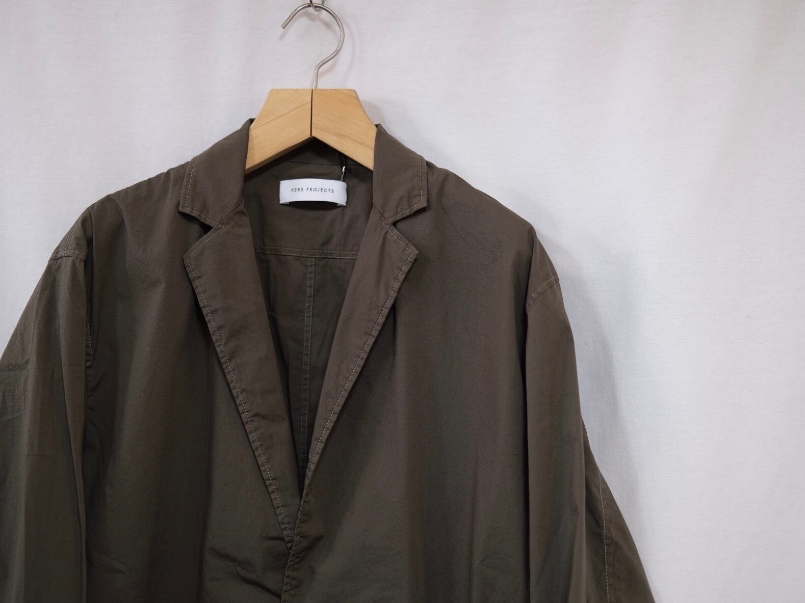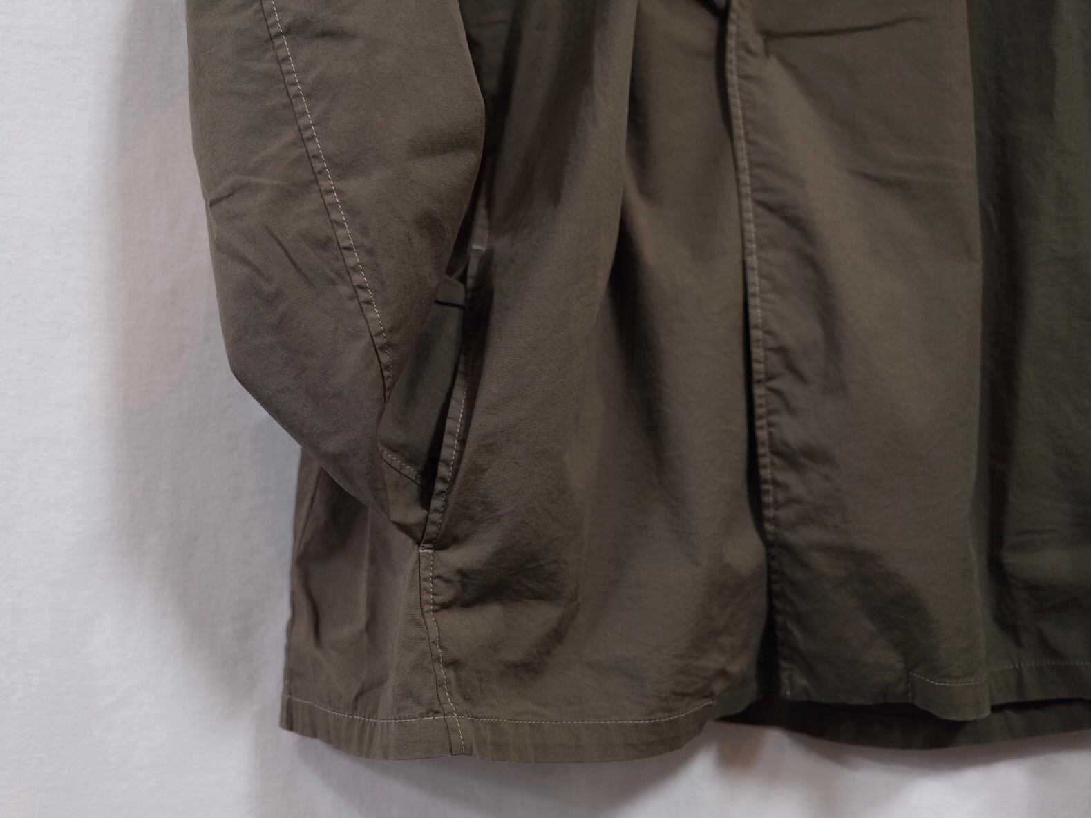 MASON SHIRCKET FABRIC HIGH DENSITY STRECH BROAD INFO 脇にシームポケット有り SIZE 2,3 COLOR OLIVE PRICE ¥21800(+tax) DETAIL シングルニードルや袋縫いで縫われたシャツ仕立てのジャケット。シャツのような軽い着心地でカーディガン感覚でサッと羽織る事ができる。 ポケットも貼り付けではなくシームポケットにすることでよりミニマルな表情に仕上げている。 ※168cm size2着用