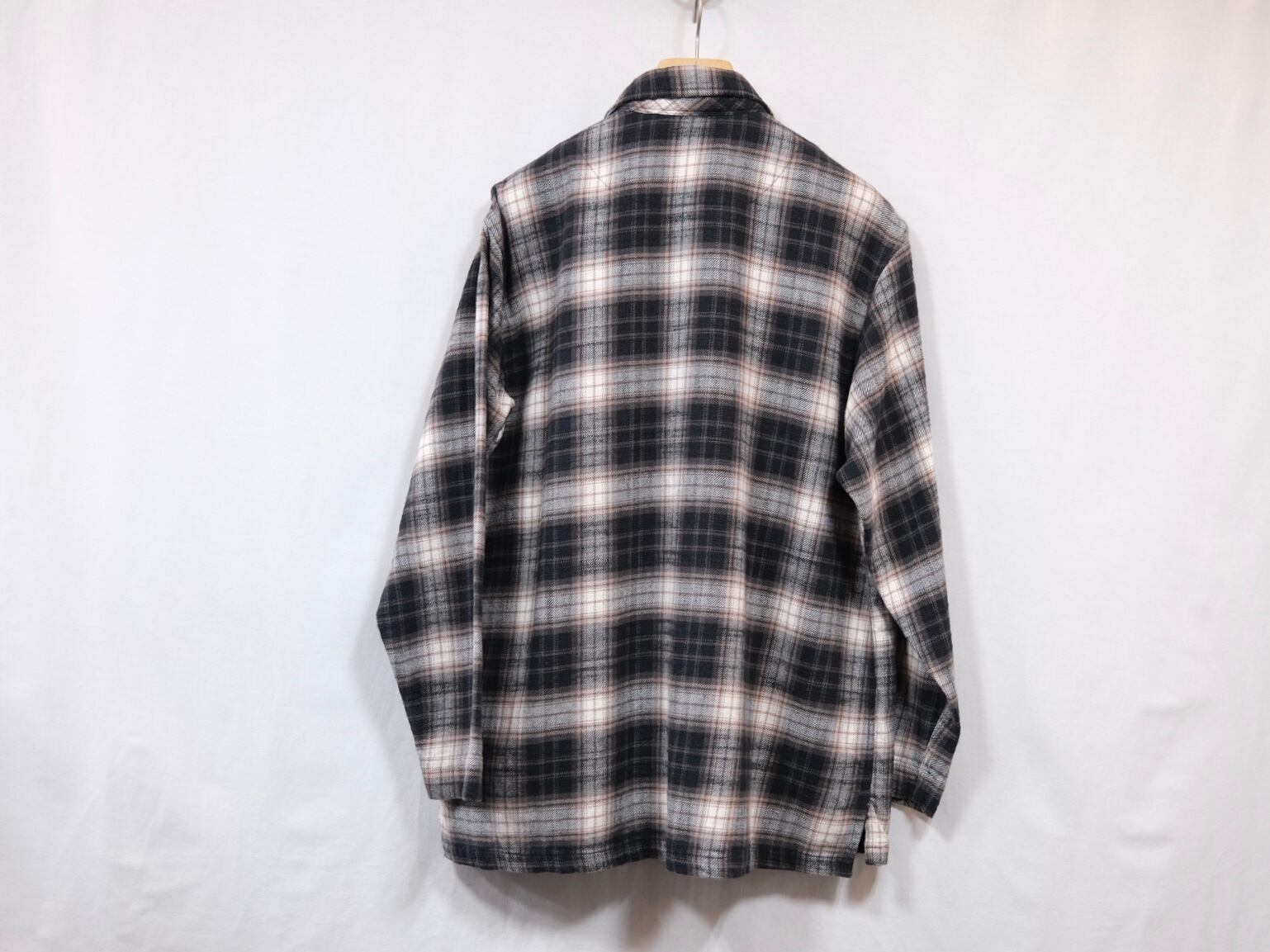 ムラのある糸をランダムに入れることでヴィンテージのネルシャツのようなムラ感のある表情に仕上げられたネルシャツ素材。製品後にオゾンウォッシュを施す事で色褪せたような風合いにしている。オゾン加工は生地への負荷を少なくしながらヴィンテージのような風合いに仕上げる加工方法。また加工のプロセスで水の使用量が少なく、加工後のオゾンは自然分解して酸素に戻る為、環境への負荷も少なくする事ができる。