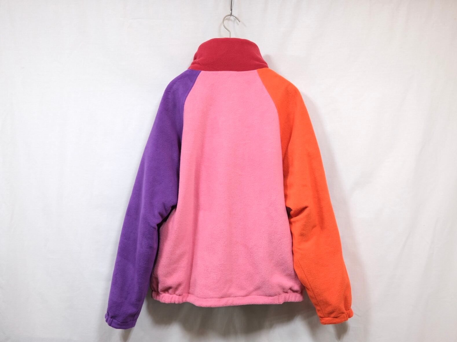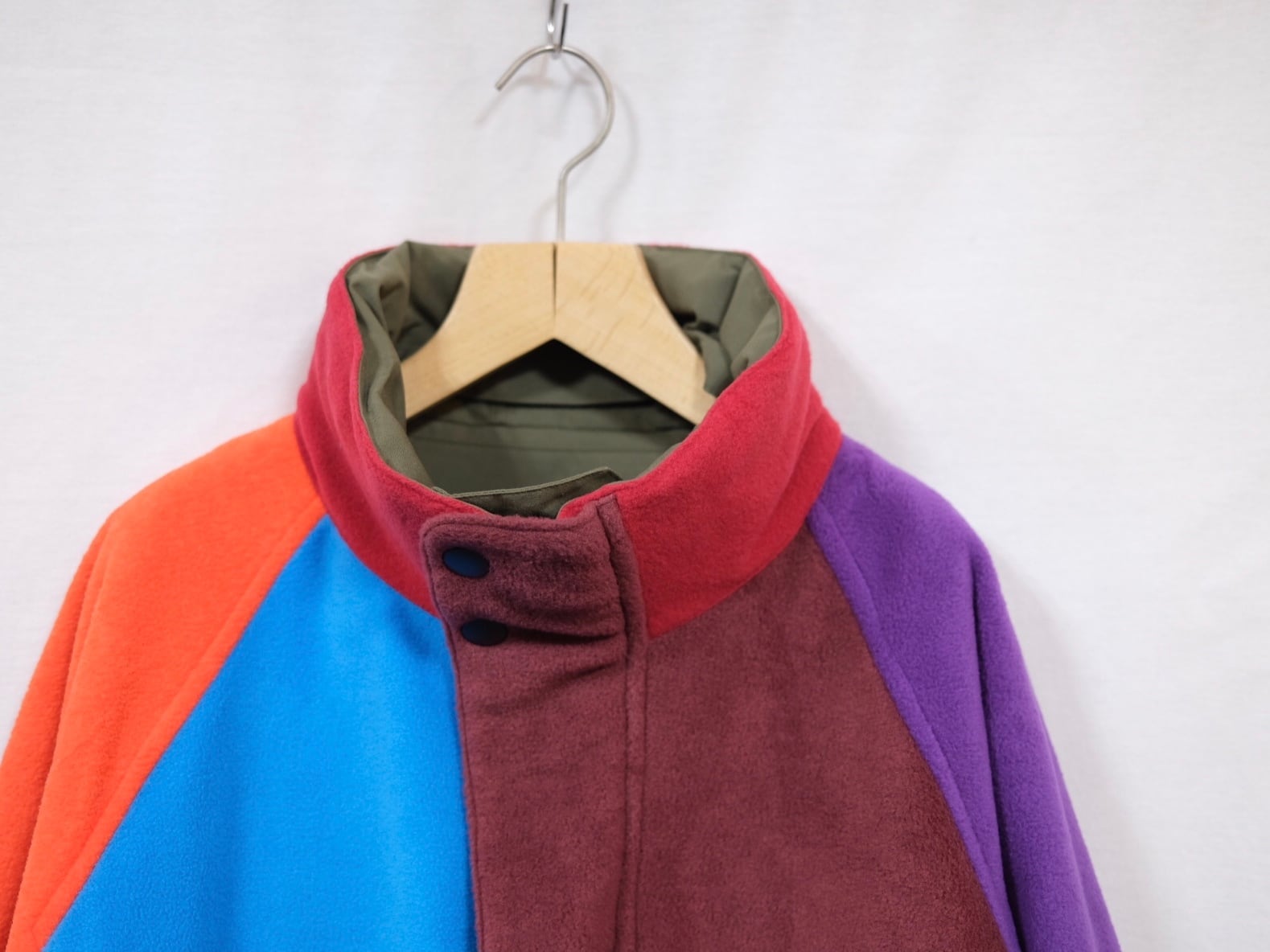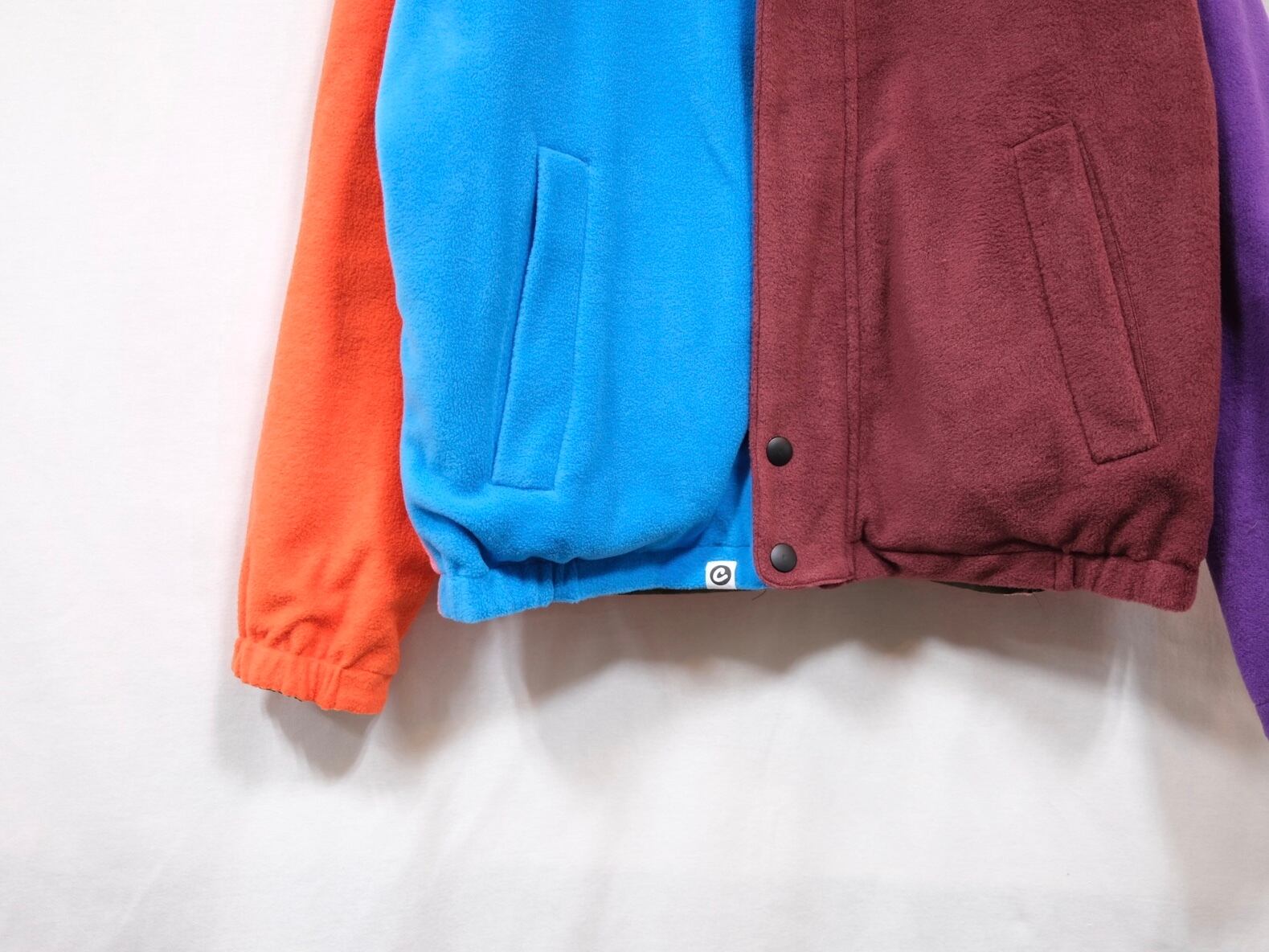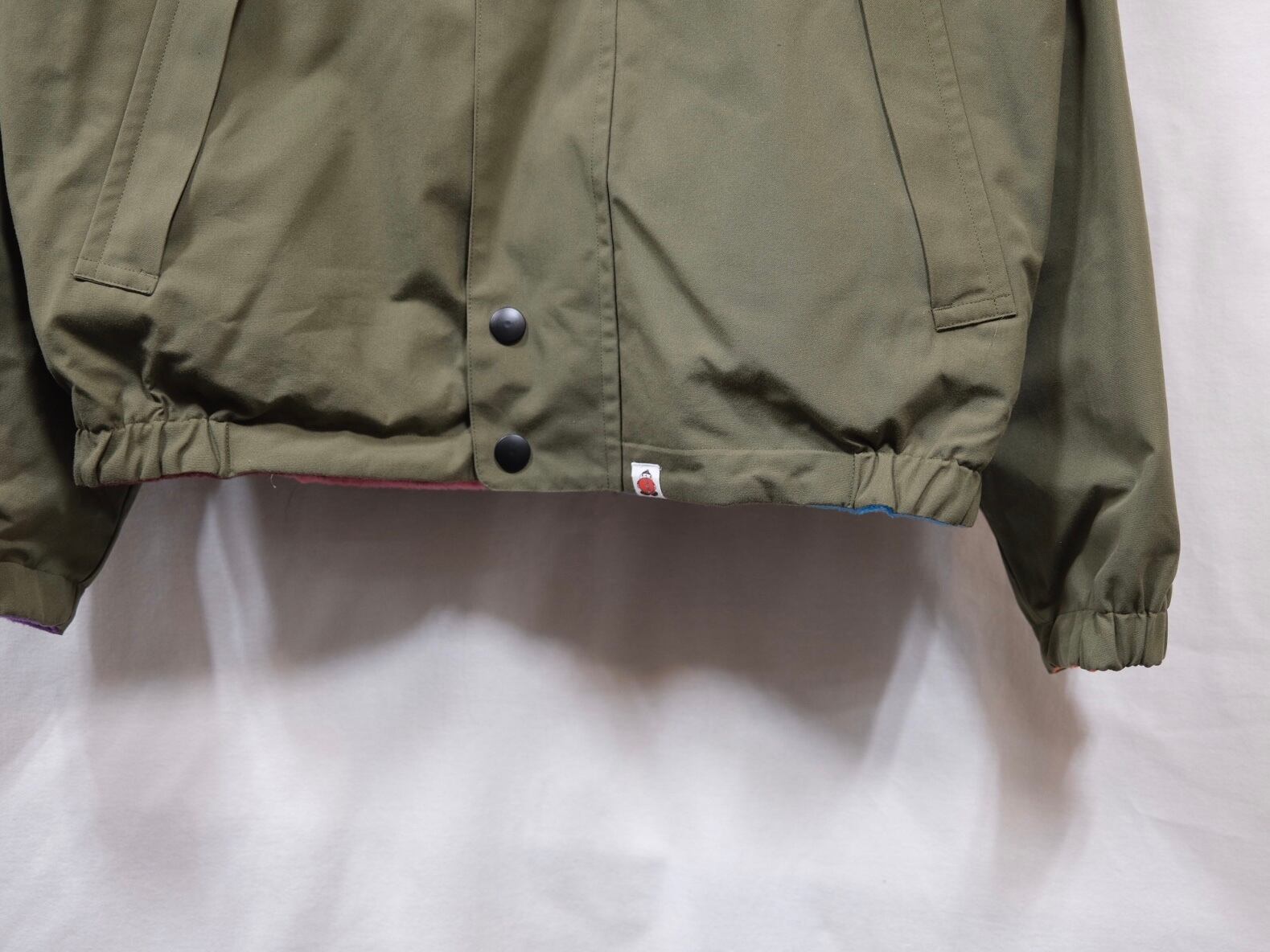 裏側のフリース側はクレイジーパターン。左胸には両面ともに"good day"の刺繍デザインが入ります。スタンドカラーにはフードが折り畳んで入っております。