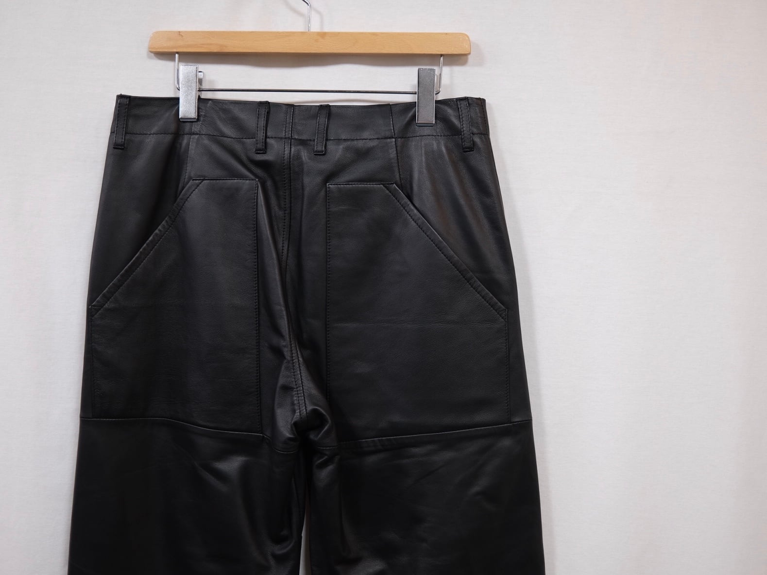 2タックのスラックスのデザインで仕上げレザーパンツ。
