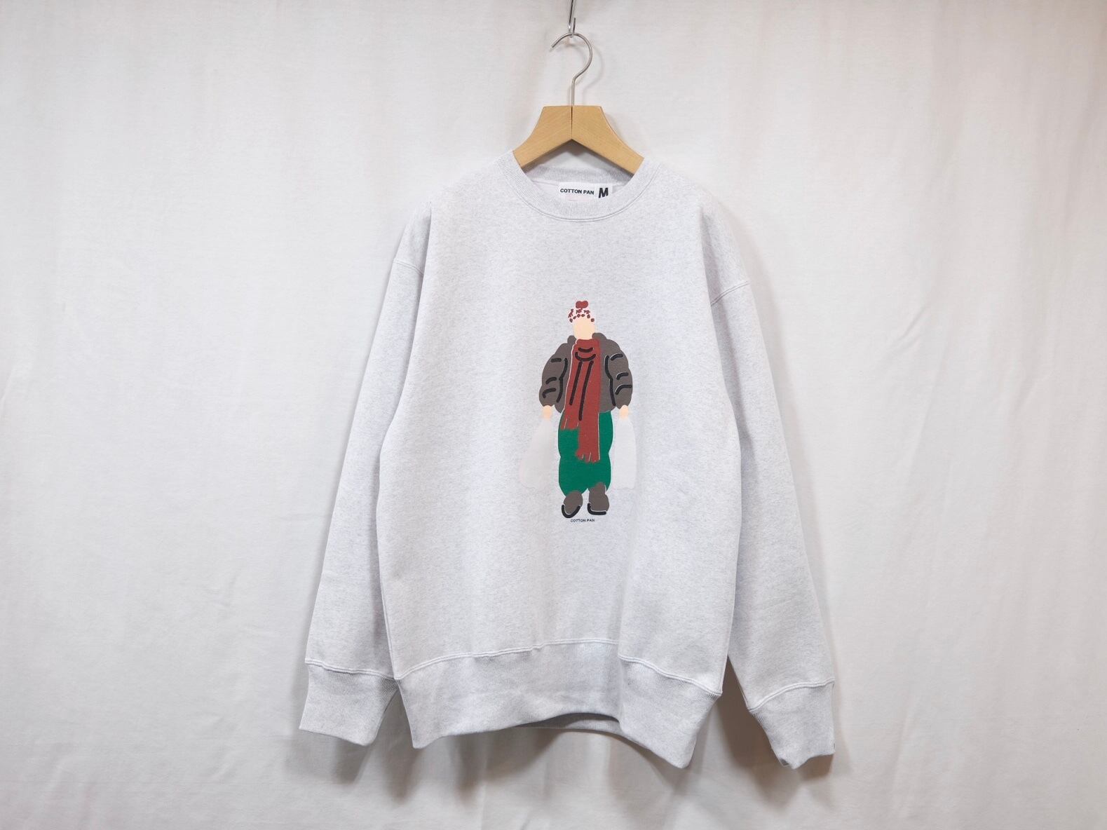 デザイナーワタナベヒカリが聞いていた音楽と好きな映画のワンシーンのイラストをプリントしたクルーネックスウェット。