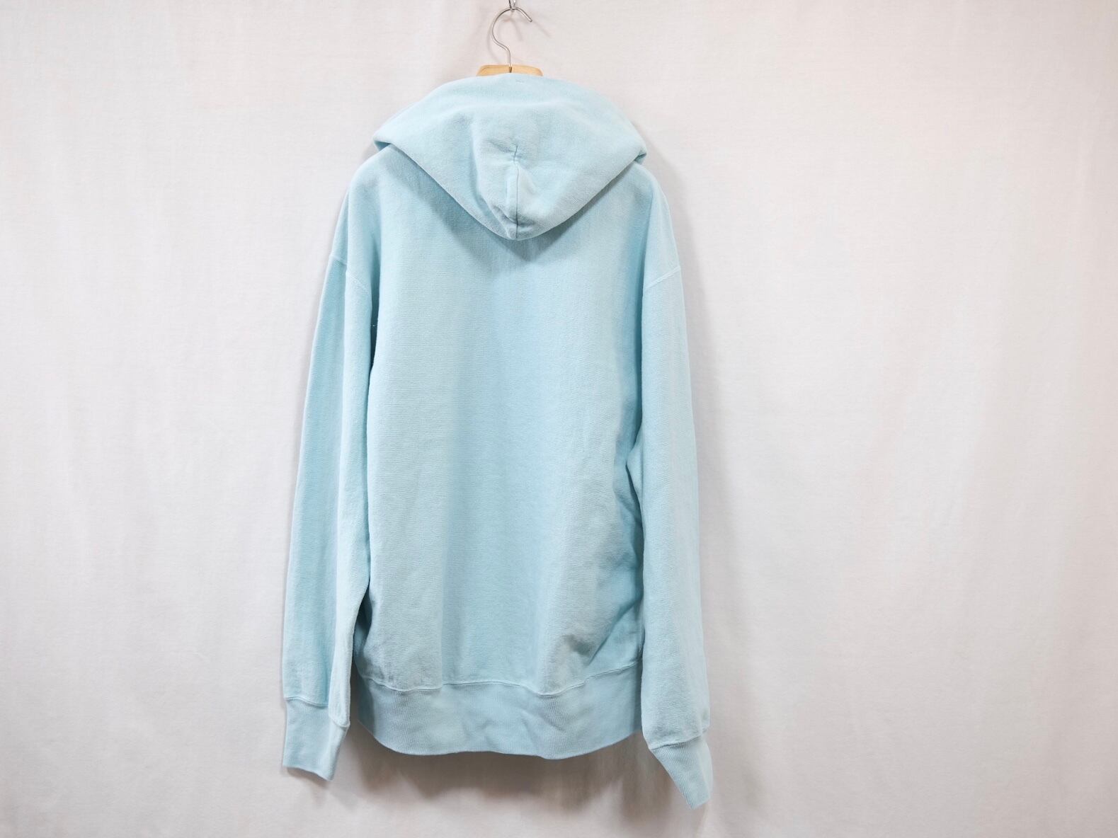 首周りの襟リブ部分にフードを挟み込んだ、「後付けパーカ」の中でも珍しい仕様を取り入れたフーデッドスウェット。襟に挟み込むことでフードの立ちがよくなり立体的なシルエットを構築するのが特徴。