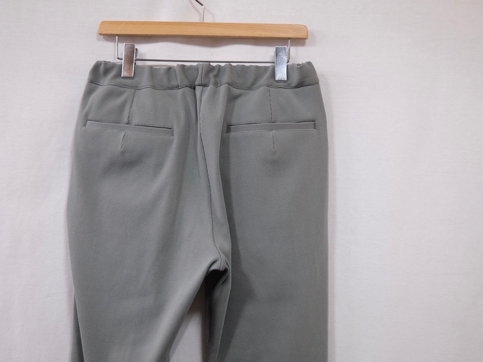 ウェストには深めのタックを取りゆとりを持たせ、膝下から裾に掛けてストレートに仕上げることで裾周りにボリュームが出るシルエット。
