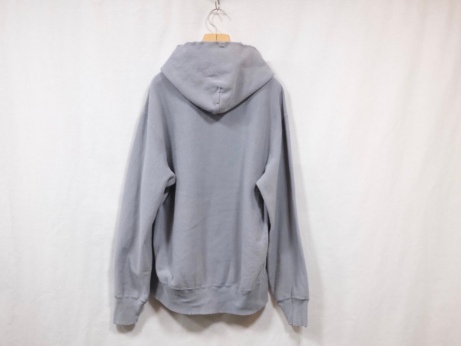 首周りの襟リブ部分にフードを挟み込んだ、「後付けパーカ」の中でも珍しい仕様を取り入れたフーデッドスウェット。襟に挟み込むことでフードの立ちがよくなり立体的なシルエットを構築するのが特徴。