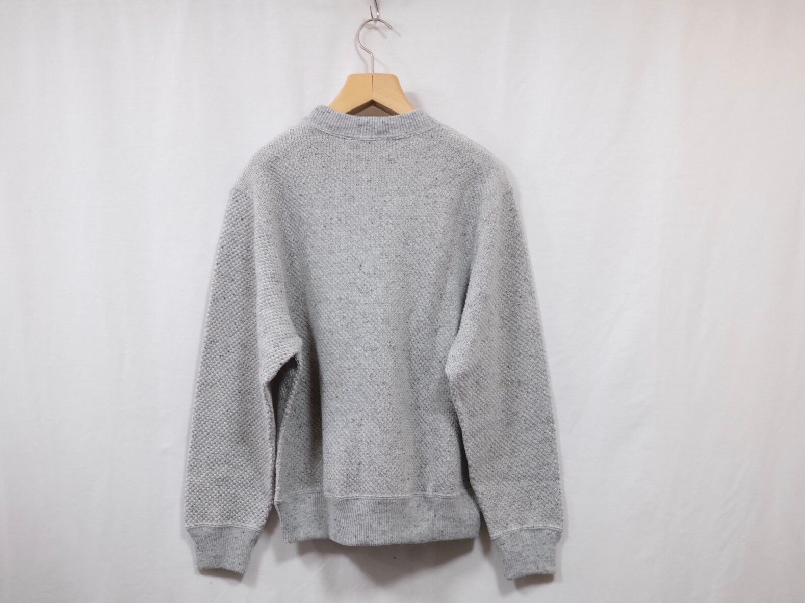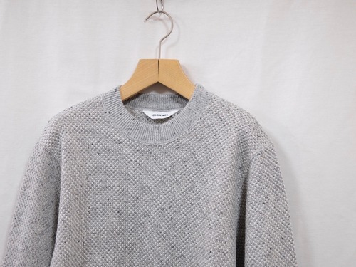 色々な再生繊維から出来ています。色々混ざって独特な風合いが出ているのでジャズネップという名前になっています。独特な目面なので、ニットセーターに見えるカットソーとして作りました。