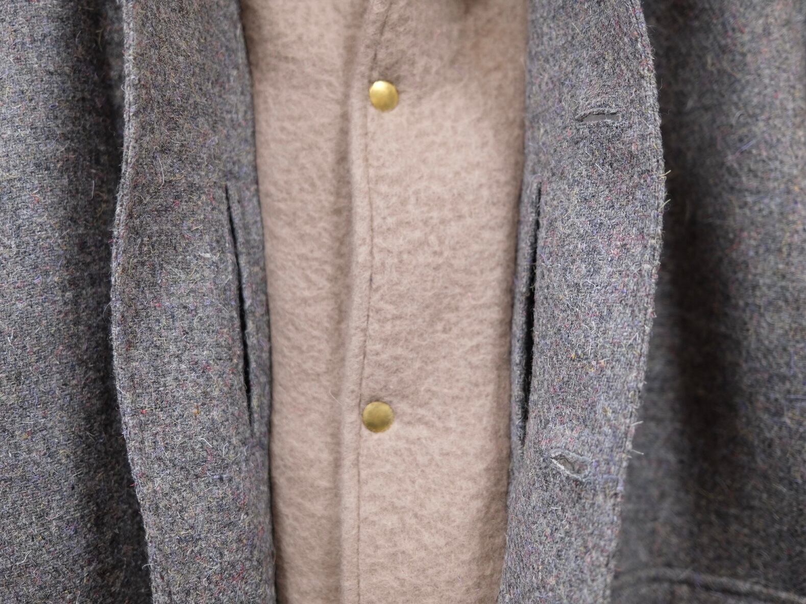 ウール×ウールの贅沢アウター。一見古着等で見かけるフェイクレイヤードのデザインに見えますが中の前立てから裏地に共地で続くちゃんとレイヤード、ポカポカです。表地の極上羊毛ツイードで防風、袖も中綿が入ってます。襟を立てるとしっかりと首を覆う設計になっているので日本の冬は十分凌げると思います。