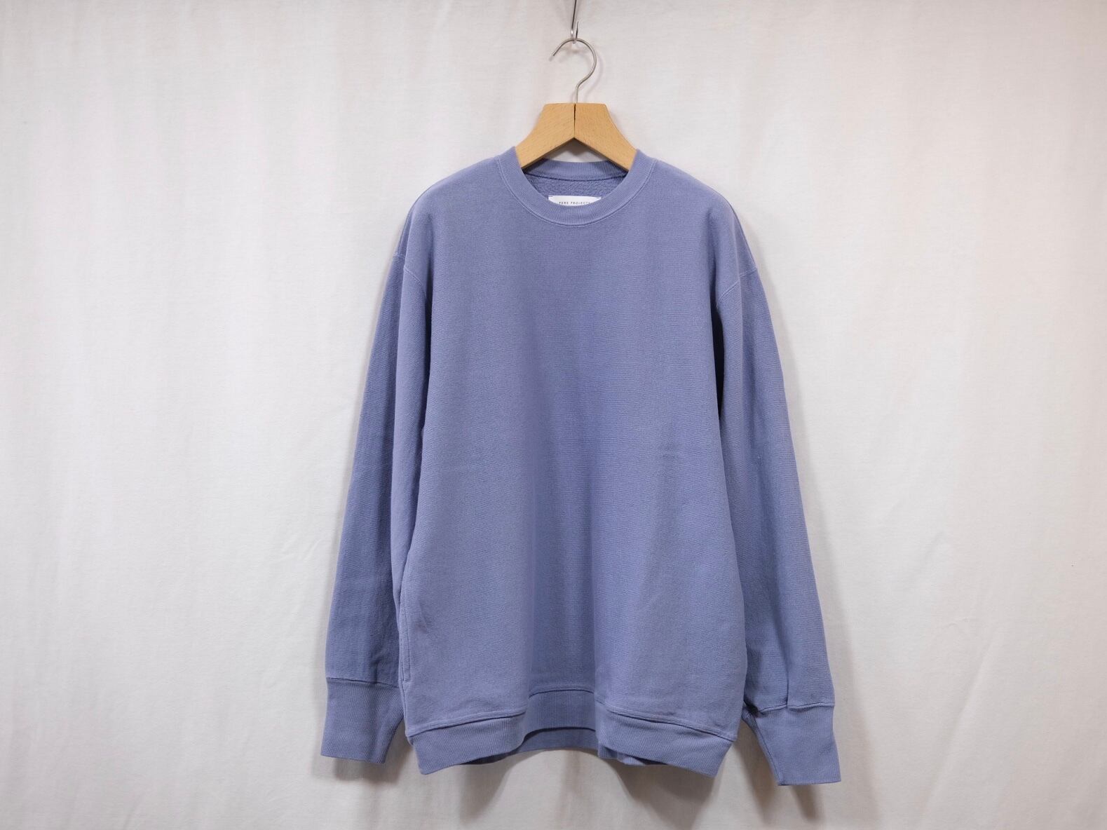 通常たてに使用する生地目を横にとることでたて縮みを抑えたリバースウィーブ仕様。裾のリブの長さを短くし,締め付けを抑えストンと落ちるボックスシルエットにしている。