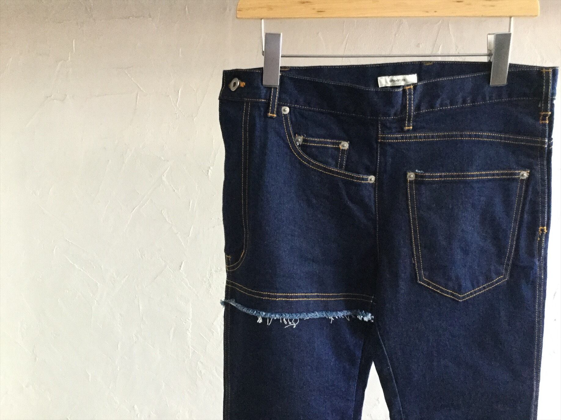 デザイナー自身が昔、ヴィンテージの古着デニム4本を解体し、再構築したデニムパンツを正確に再現した一本です。