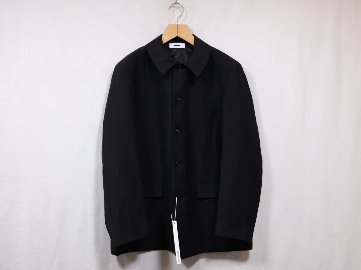 ややジャスト目に設定した肩幅とたっぷりした身幅のバランス、また極端に前振りにした袖とリバーバレードならではフォルムが特徴です。