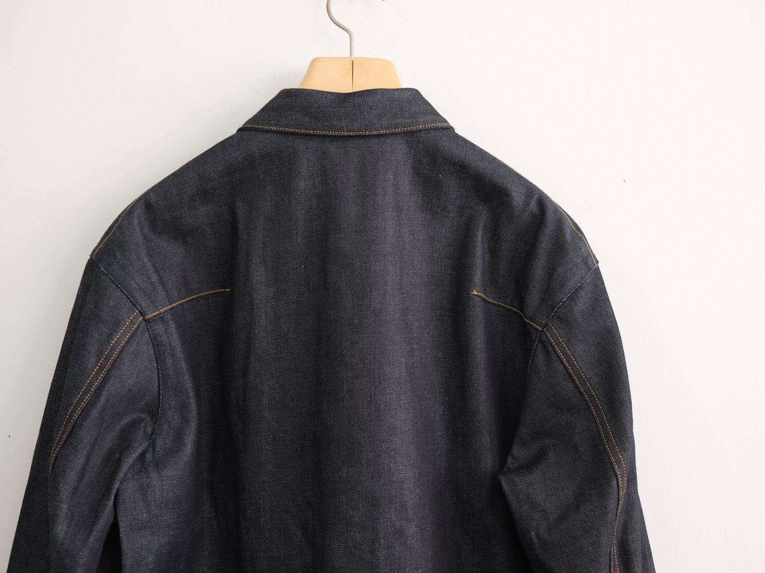 12.5oz程の比較的ライトウェイトのリジットデニムを使用しています。身頃の両脇にはスラッシュポケットを配しています。