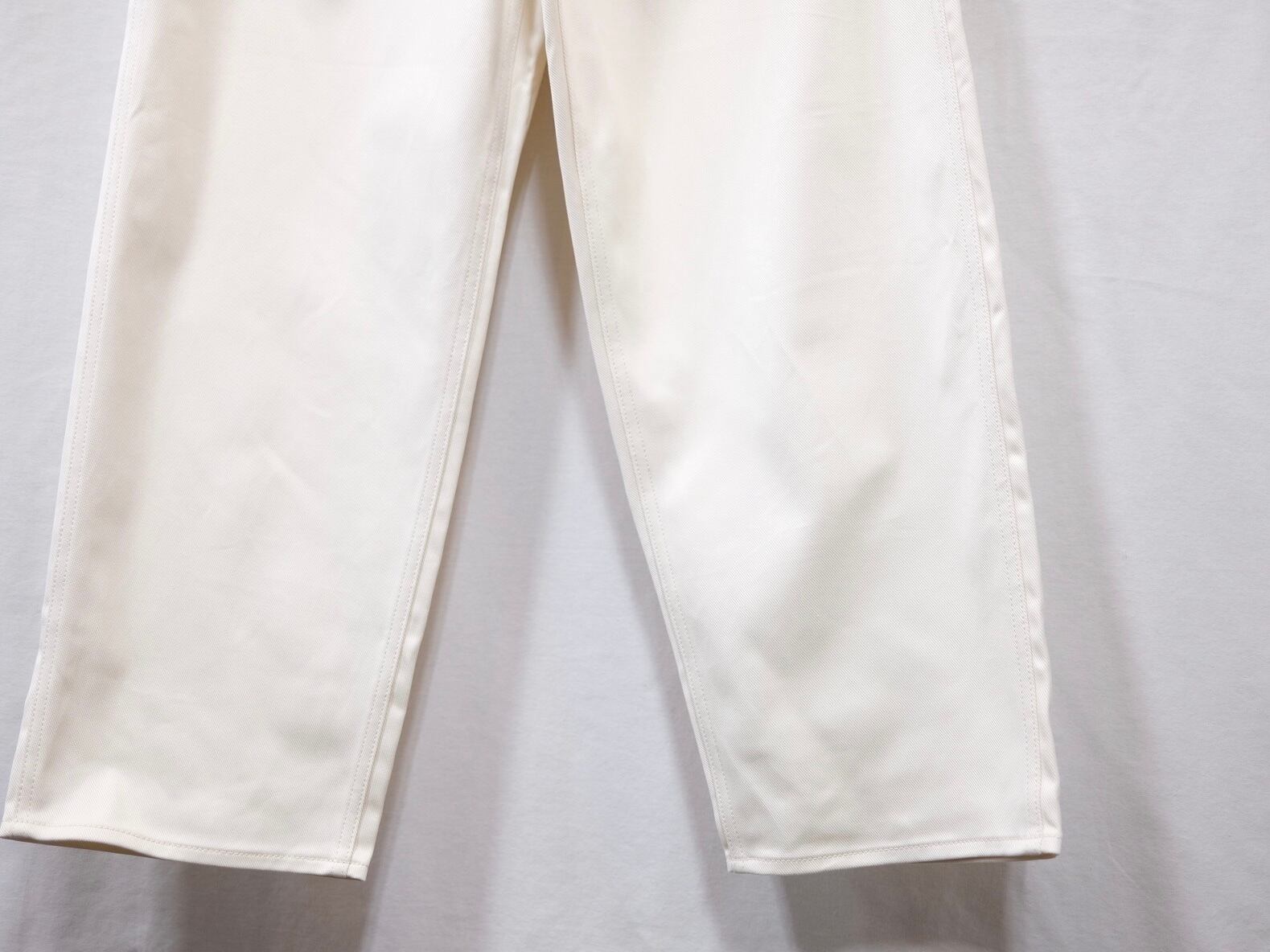 1960年代に、アメリカ東海岸のアイビーリーガーやサーファー達から絶大な人気を誇った名作モデルをサンプリングしたパンツ。ややワイドなバギーシルエットにアレンジしています。素材は、中番手30/1のスビンコットンを4本、甘く撚り合わせた太い糸で織り上げたカツラギ(コットンツイル)。生地の膨らみやガッシリとした質感に加えて、スビンコットンらしい、ねっとりした柔らかさも持ちあわせています。
