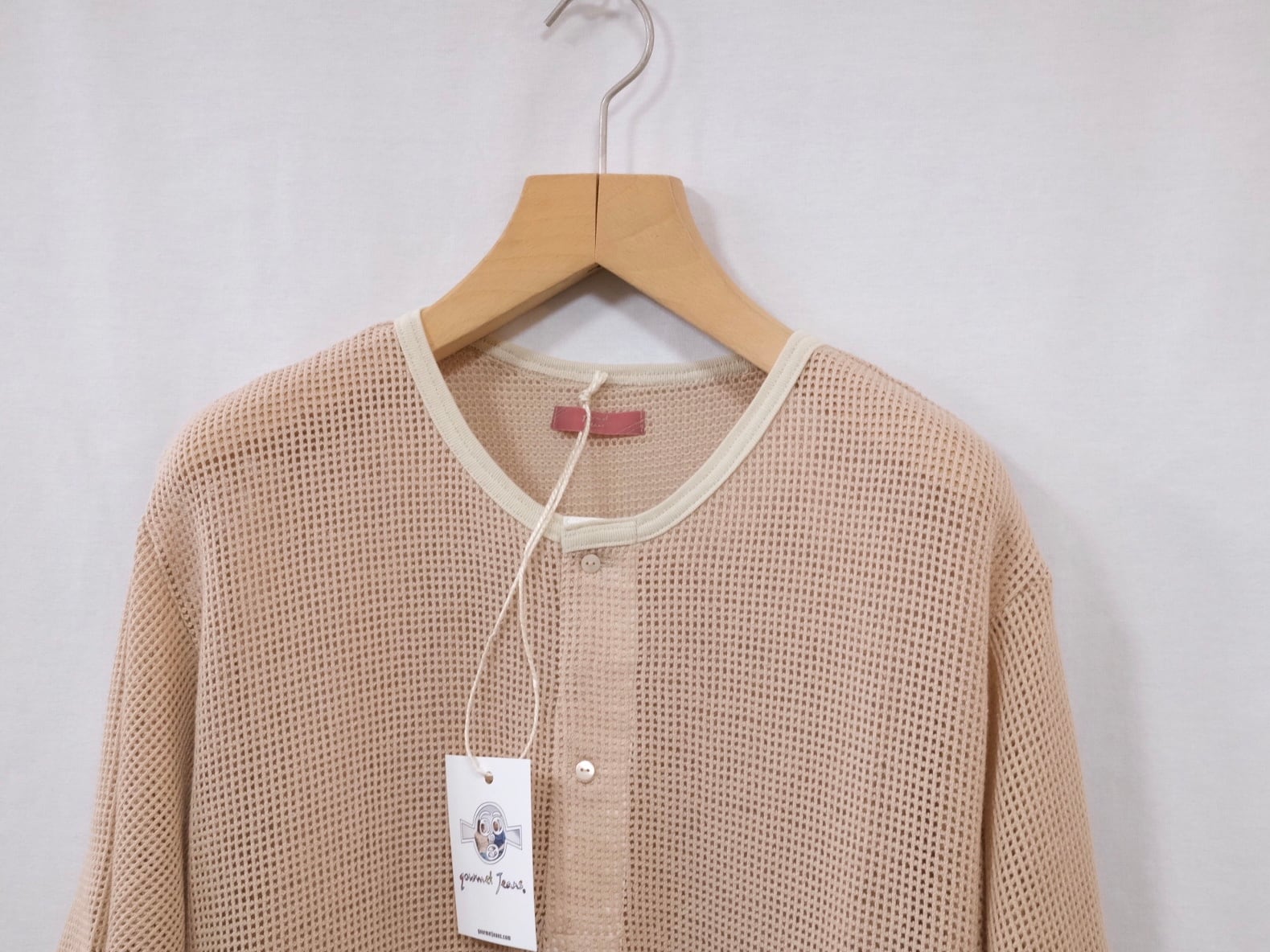 インナーに着古いしたカットソーなどを適当にレイヤーして楽しんで欲しいとう意図で制作したメッシュシリーズからヘンリーネックTシャツです。