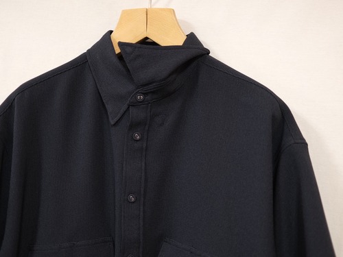 台襟付きのシャツカラーと共地包みボタンでシックなビジュアル、そして機能的にも非常に優れたグッドデザイン。