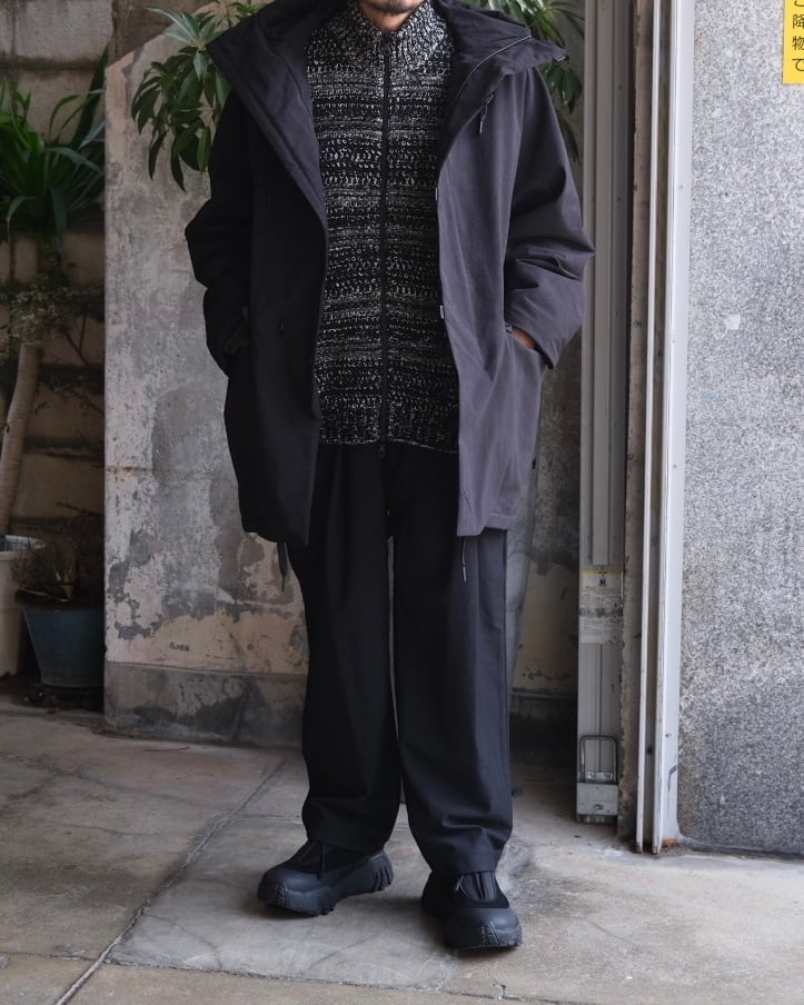 “傘も鞄も持たない“ をコンセプトに開発されたバリアライザープラスは、悪天候な時こそ手ぶらで出かけることを目的に開発された、冬季悪天候用アウター。