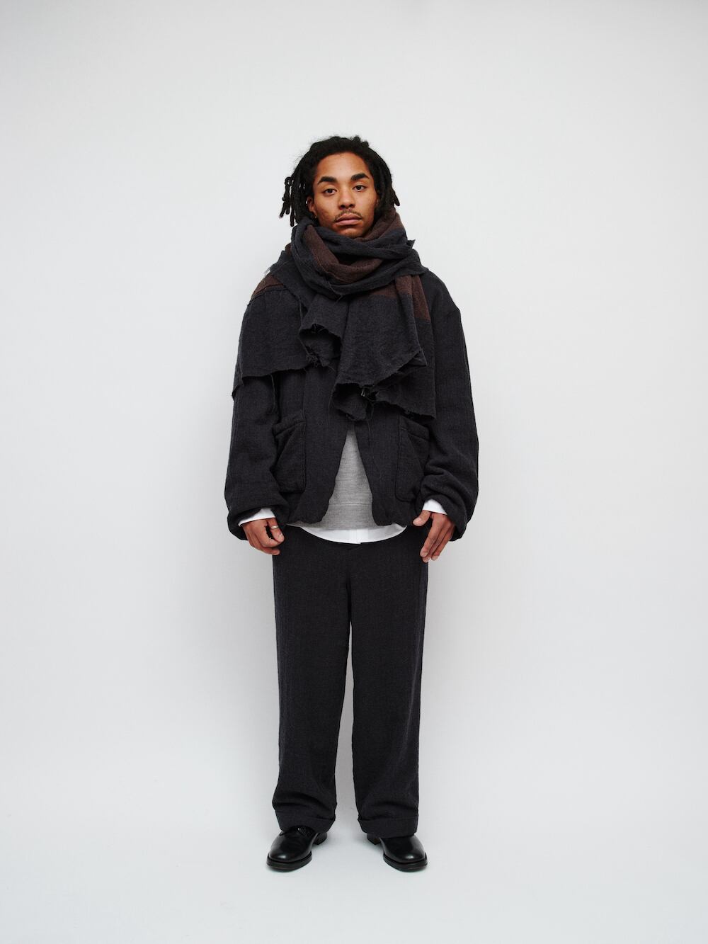 製品洗い加工を施して敢えて縮み、歪みを生じさせ形を崩したデザインです。