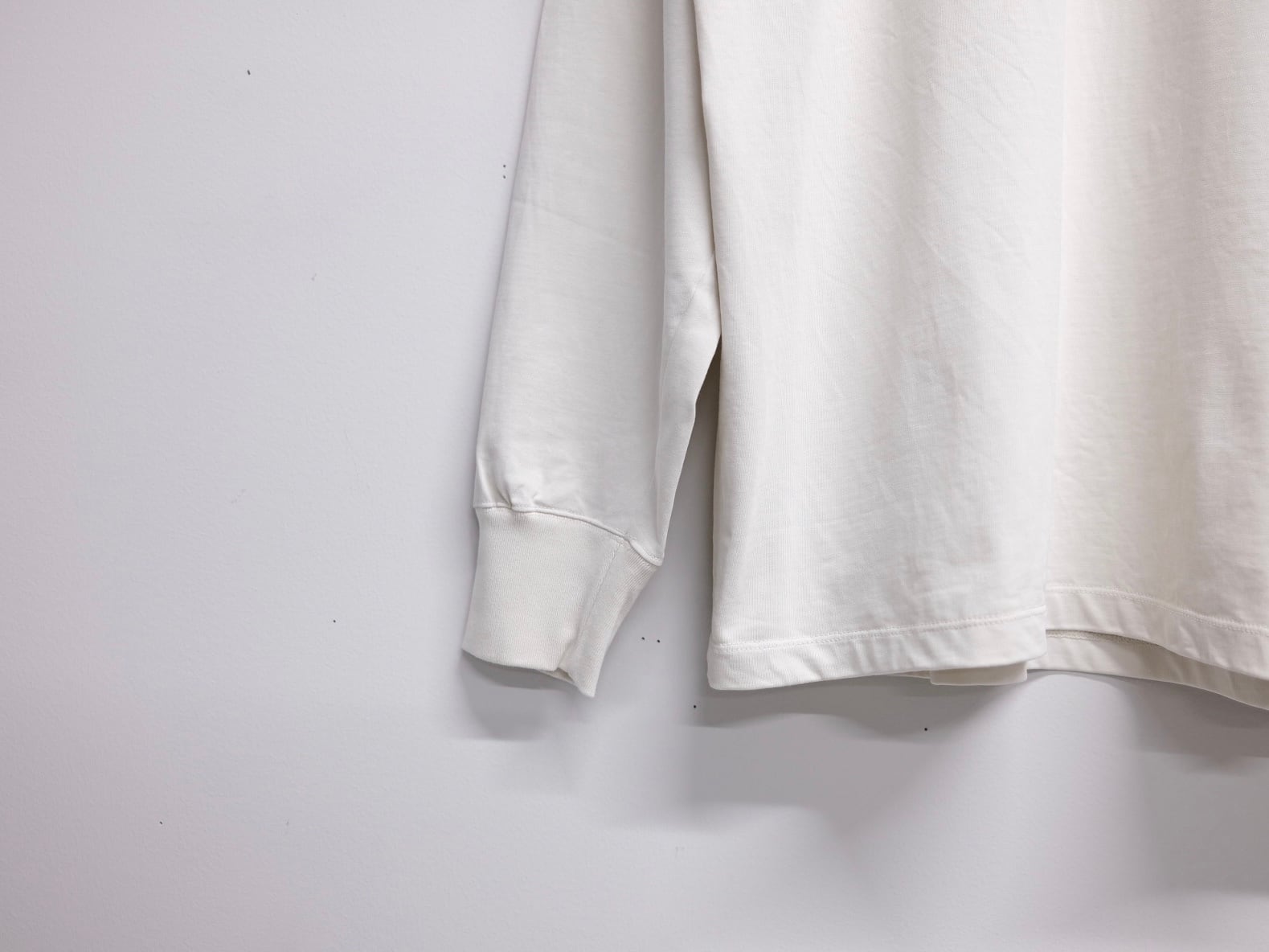 糸の撚り回数を通常より多くし、表面を滑らかにした天竺素材。表面の毛羽が抑えられ肌当りもよくなっている。裏糸を入れて編むことで張り感がでて1枚着でも着やすくなっている。
