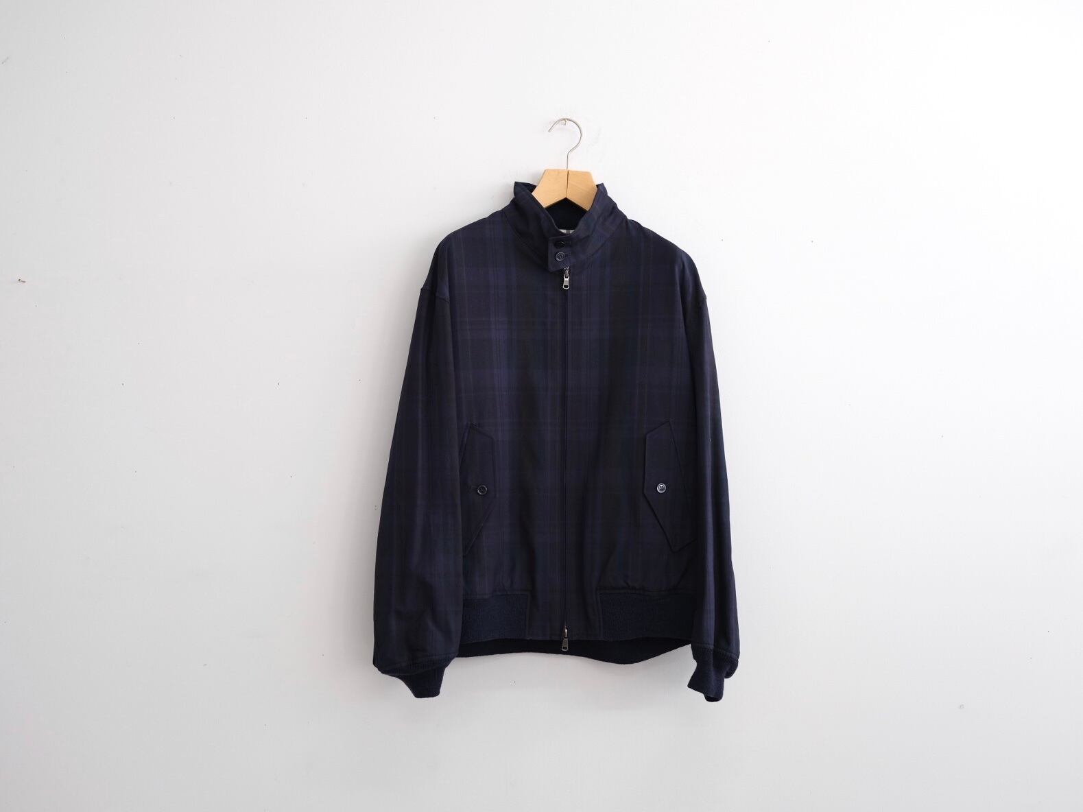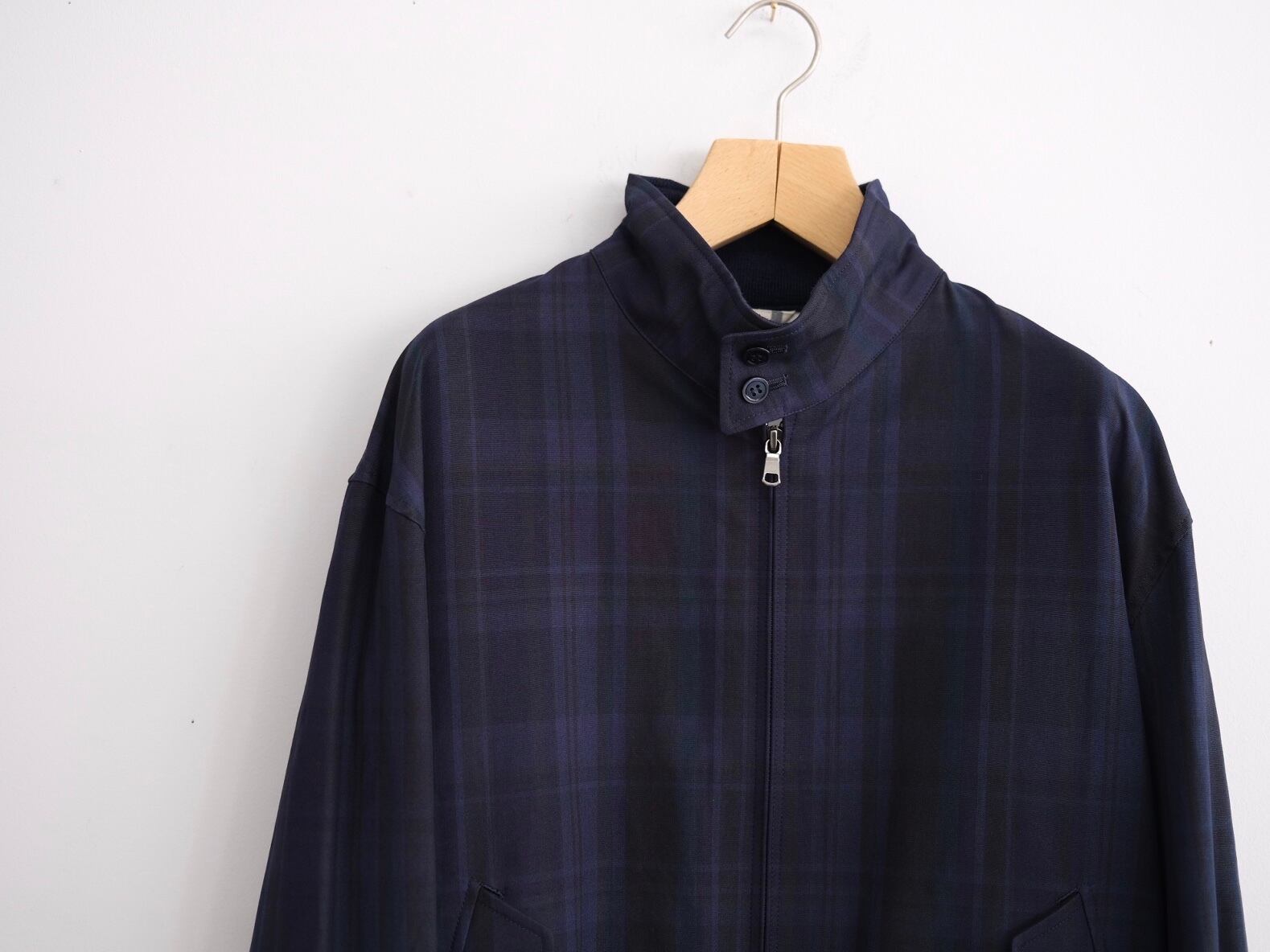 J.PRESSが定番として展開するゴルフジャケットをCIOTAオリジナルのダークトーンマドラスチェックファブリックでアレンジ。生地は1980年代のアメリカ製ビンテージファブリックの風合いを参考に、30番手双糸のスビンコットンを織り上げました。適度なハリを残しながらも、柔らかくとろみのある質感です。ややゆとりのあるボクシーなシルエットで、防風のための衿とチンタブが融合したドックイヤーカラー、雨滴をスムーズに流すように考えられたバックヨーク、ニットリブ仕様の裾と袖など、ゴルフ用のアウターとして生まれた機能的なディテールが特徴です。