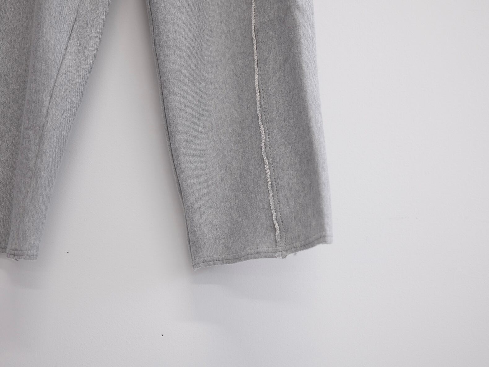 現在は生産されていない和歌山の旧式の編機で編まれた裏毛素材。旧式の編機は低速で編まれる為、空気を多く含みふくらみのある風合。空気を含んだ柔らかな着心地が特徴。